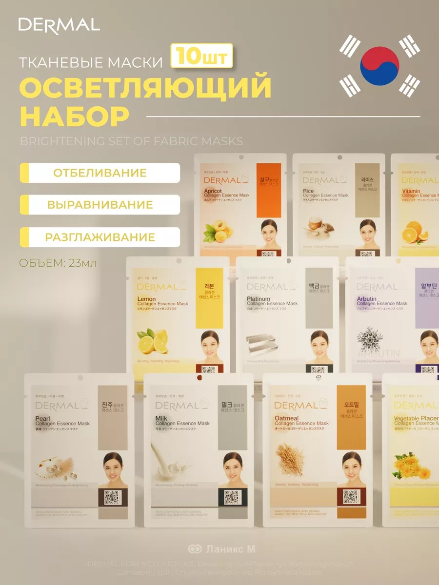 Осветляющий набор тканевых масок от Dermal Korea для осветления, тонирования и здорового сияния кожи - грамотно проверен путем долгих лабораторных исследований, а экстракт каждой маски индивидуально подобран и направлен на выравнивание тона и текстуры кожи лица, тонизирование и осветление пигментации на лице.