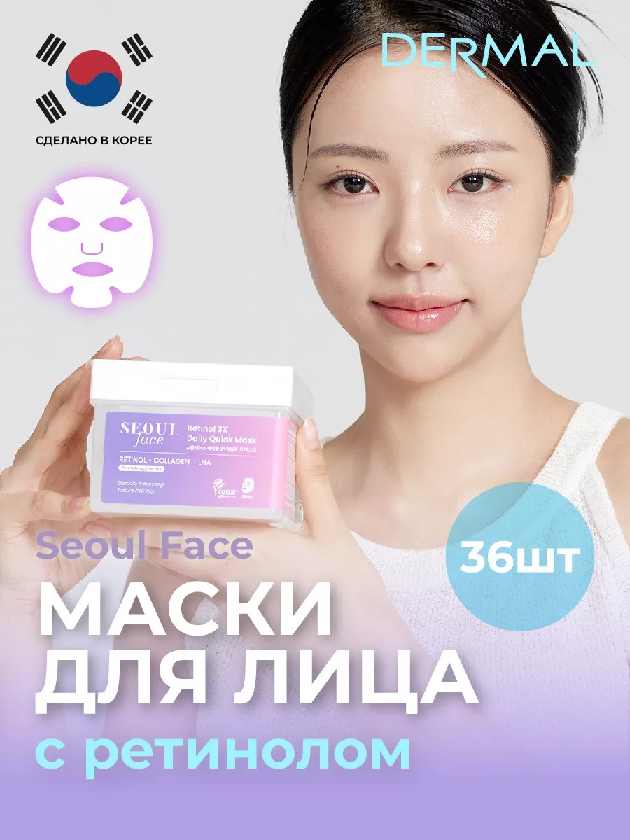 Dermal Набор масок для лица с ретинолом Seoul Face 36шт