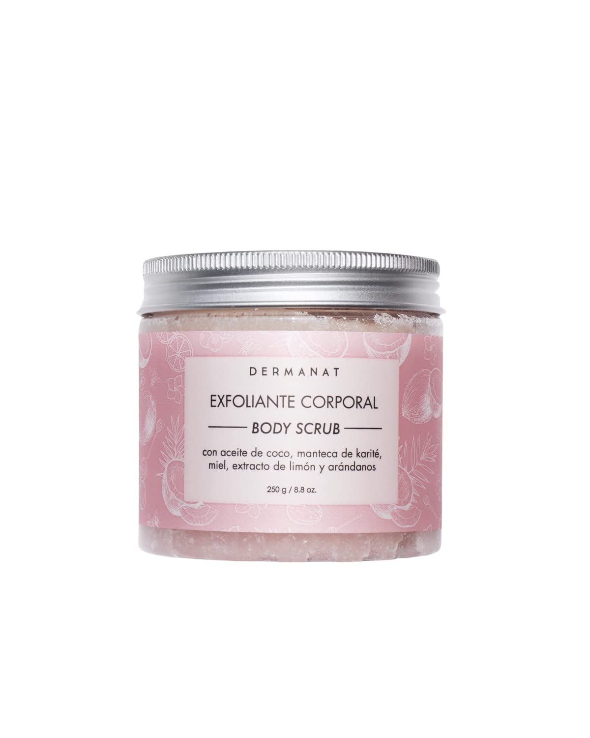 Dermanat Body Scrub. Nourishing and Hydrating Body Skin Exfoliating Scrub with Shea Butter & delicious coconut-lemon scent. Gentle Exfoliation and Cleansing. 8.8 oz.