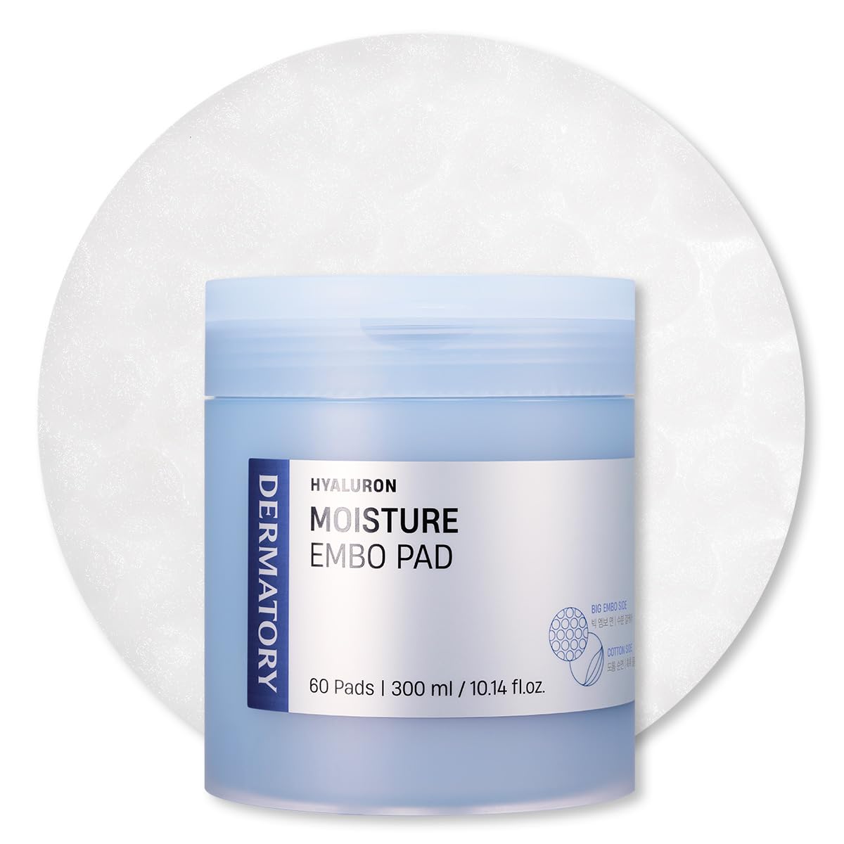 DERMATORY Hyaluron Moisture Embo Pad Hyaluronic Acid Cotton Toner Pads for Face Deep Moisturizing for Dry Skin Glow Skin for Makeup Hypoallergenic for Sensitive Skin Korean Skin Care 60 Sheets