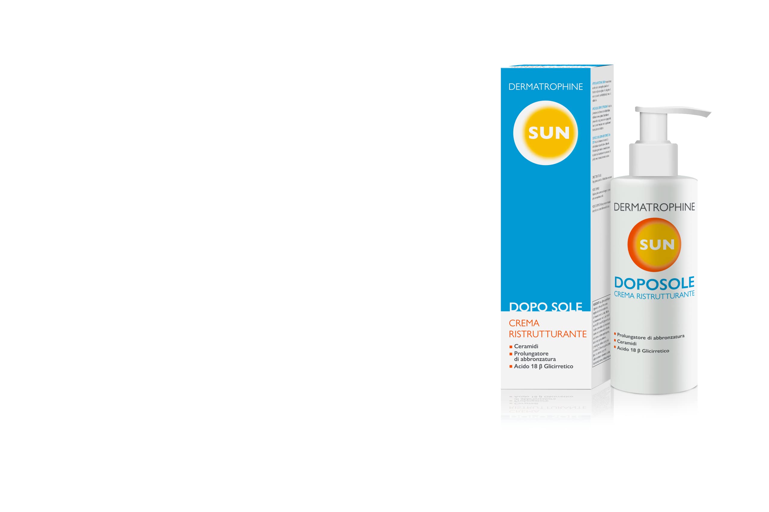 After Sun Body Cream with restructuring effect. Relieves dryness and dehydration of the skin and restores optimal moisture levels. A creamy texture for perfectly hydrated and radiant skin. Skin type: all skin types. Ideal for: After-unnel Texture: Cream. Format: Bottle 200 ml. The rich formula is based on 18 g glycyreta acid and bisabolol, soothing and soothing. Ceramide, which help to maintain the biological skin barrier. It also contains a tan extender for an intensive and long-lasting tan. Apply generously to face and body after sunbathing.Calming and soothing effect. Extends the tan. Formulated with caring active ingredients, including ceramides, tanning extender and 18 ß-glyceric acid. A creamy texture for perfectly hydrating, radiant skin and an intensive and long-lasting complexion. Dermatrophine Pro Sun is a high-quality product line with nourishing active ingredients and innovative formulas. They are state-of-the-art sunscreens with long-lasting sunscreens that are safe for skin and the environment. The products are dermatologically tested, with functional active ingredients and a pleasant texture. Dermatrophine Pro is a Sifarma brand with more than 20 years of experience in the field of skin cosmetics. Thanks to this line it is possible to treat specific skin impurities with powerful active ingredients. Dermatrophine Pro uses the research and development laboratories Kanova, highly qualified for achieving innovative formulations. Dermatologically tested, without parabens, paraffin and petrolatum.Sun Regenererende After Sun 200 ml AfterSun bodycrème voor een lichte kleur en een hydraterende huid Na de zon voor een intensieve en duurzame kleur After Sun Body Cream met restructurerend effect. Verlicht de droogheid en uitdroging van de huid en herstelt het optimale vochtgehalte. Een romige textuur voor een perfect gehydrateerde en stralende huid. Huidtype: alle huidtypes. Ideaal voor: After-unnel Textuur: Crème. Formaat: Fles 200 ml. De rijke formule is op basis van 18 g glykyretazuur en bisabolol, rustgevend en rustgevend. Ceramide, die helpen om de siologische huidbarrière te behouden. Het bevat ook een bruiningsverlenger voor een intensieve en langdurige teint. Na het zonnebaden royaal op gezicht en lichaam aanbrengen.Kalmerende en rustgevende werking. Verlengt de bruining. Geformuleerd met verzorgende werkzame stoffen, waaronder ceramiden, bruiningsverlenger en 18 ß-glycerinezuur. Een romige textuur voor een perfect hydraterende, stralende huid en een intensieve en langdurige teint. Dermatrophine Pro Sun is een hoogwaardige productlijn met voedende werkzame stoffen en innovatieve formules. Ze zijn ultramoderne zonnefilters met duurzame zonnefilters die veilig zijn voor huid en milieu. De producten zijn dermatologisch getest, met functionele werkzame stoffen en een aangename textuur. Dermatrophine Pro is een merk van Sifarma met meer dan 20 jaar ervaring op het gebied van huidcosmetica. Dankzij deze lijn is het mogelijk om de specifieke onzuiverheden van de huid met krachtige werkzame stoffen te behandelen. Dermatrophine Pro maakt gebruik van de onderzoeks- en ontwikkelingslaboratoria Kanova, zeer gekwalificeerd voor het bereiken van innovatieve formuleringen. Dermatologisch getest, zonder parabenen, paraffine en petrolaat.