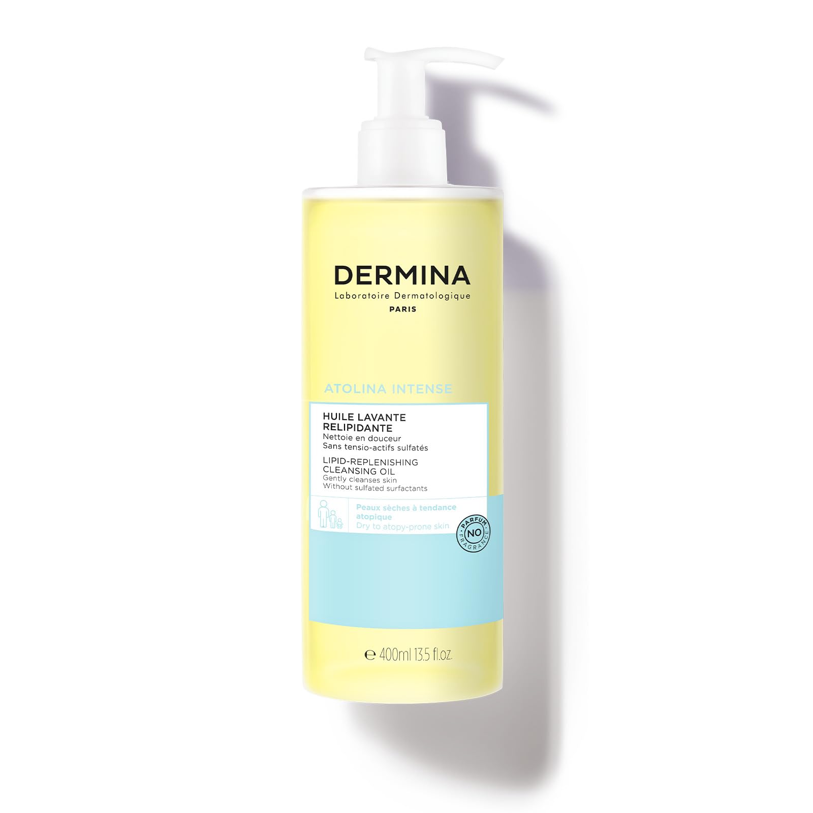 DERMINA Relipidating Cleansing Oil 400 ml Shower Oil - Cleanses Nourishes Protects - Shower Gel Face and Body for Sensitiv