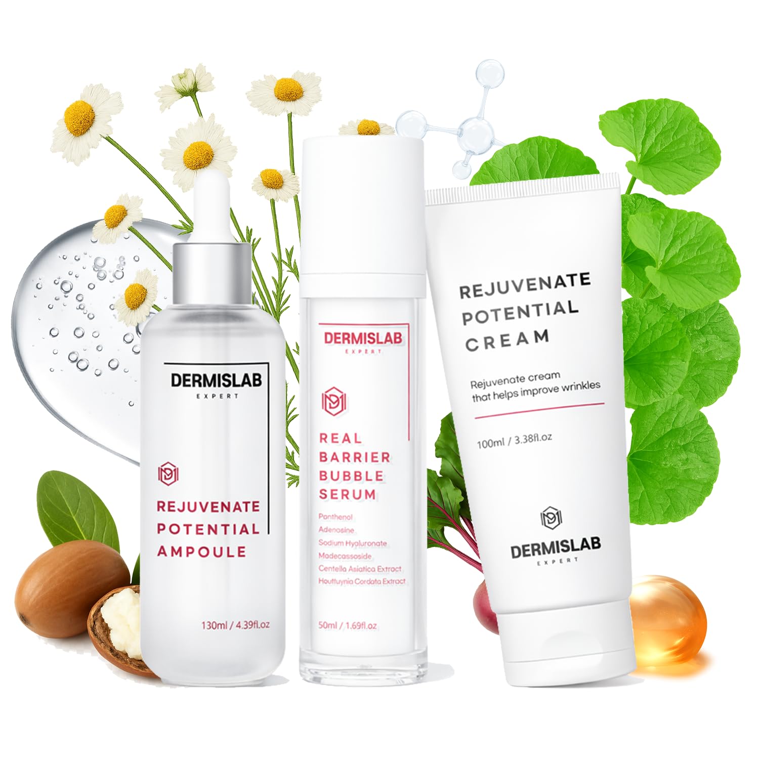 DERMISLAB Daily Essential Rejuvenate Set - Ampoule + Bubble Serum + Moisture Cream | Collagen Hyaluronic Acid & Barrier-Boosting | Korean Derma Cosmetic (3 pieces)