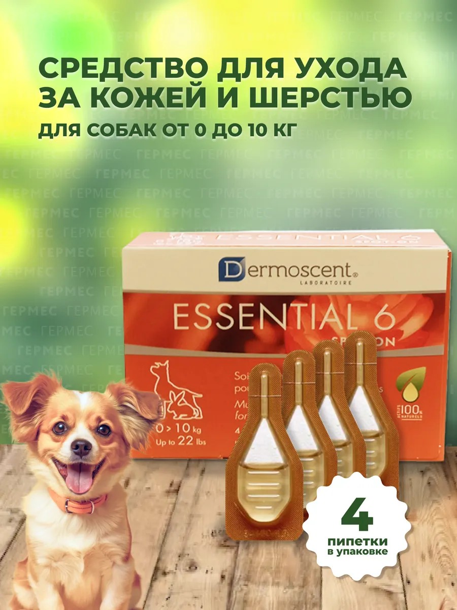| Полное наименование товара | Эссеншиал 6 спот он для собак до 10 кг (Dermoscent Essential 6 spot-on), уп. 4 пипетки |