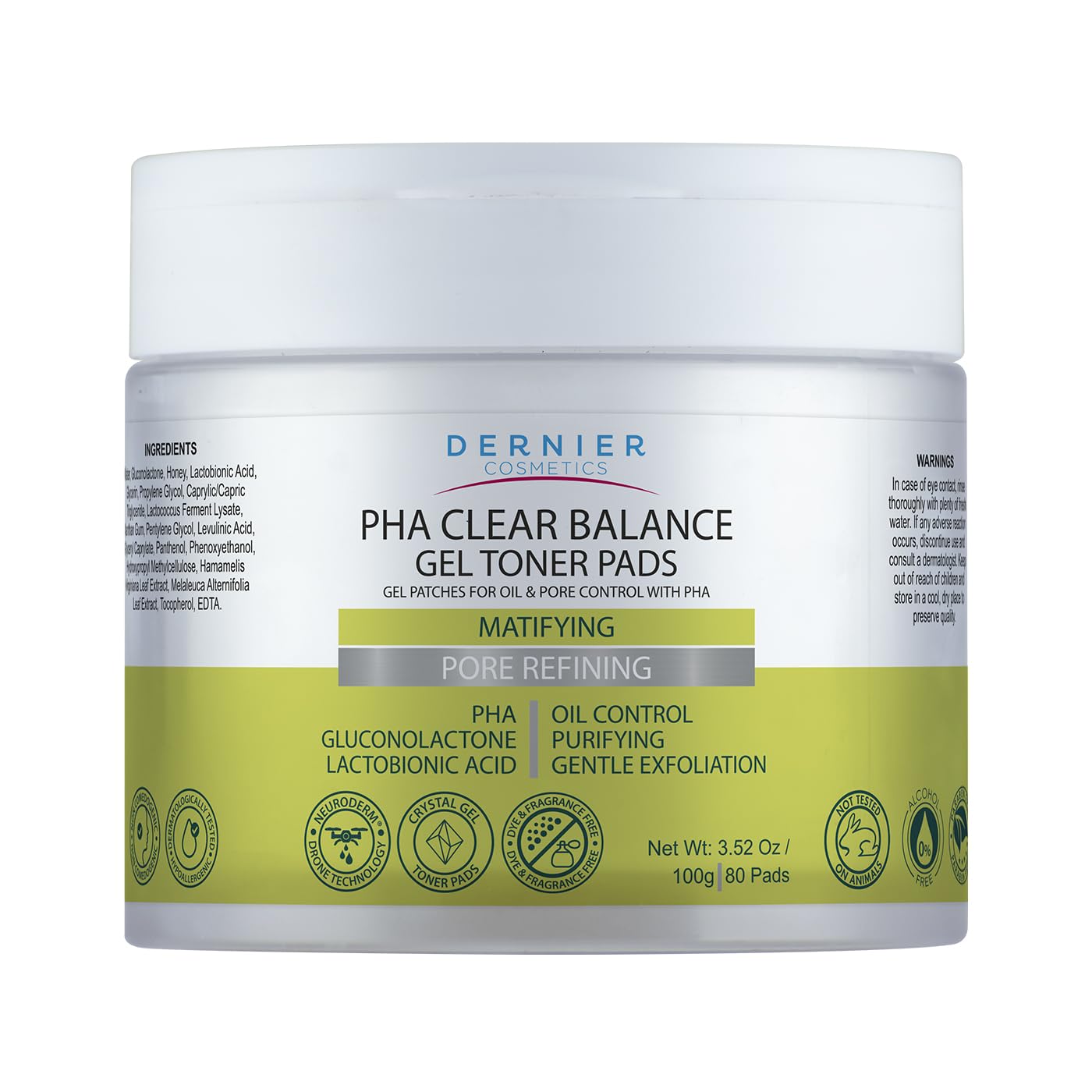Dernier Beauty Exfoliating Face Pads PHA & Gluconolactone Face Scrub with Astringent Action Oil Control Pore Minimizer Gentle Daily Exfoliation for Smooth Radiance | 100g - 80 Pads