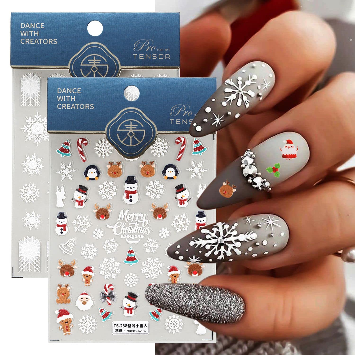 Design for Acrylic Nails Elk Santa Clause Candy 3D Embossed Nail Stickers Snowflakes Nail Sticker Christamas Nail Stickers Nail Art Stickers