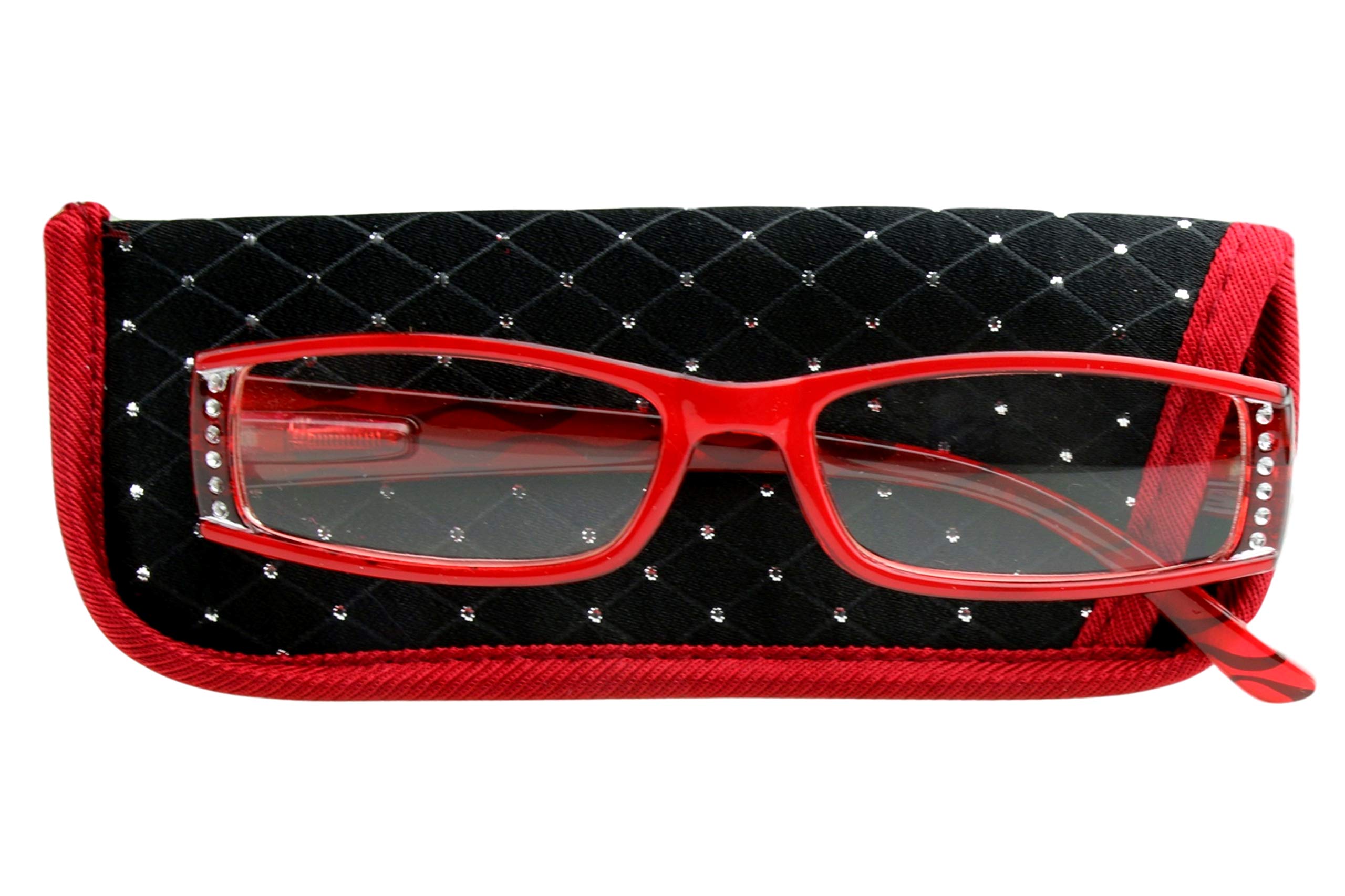 Designer Lesebrille für Damen rot glänzend mit Strass besetzt, Federscharnier Bügel, Etui auch mit Strasssteinen besetzt 1.0 1.5 2.0 2.5 3.0, Dioptrien:Dioptrien 1.0