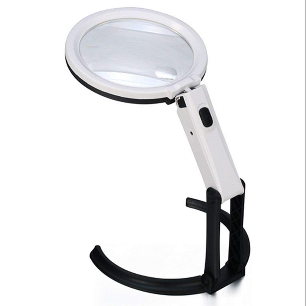 Desktop Glass with Light Folding Illumination Reading Magnifier Rechargeable Handheld Loupe 2X 5X Optical HD Glass Lens Made in China