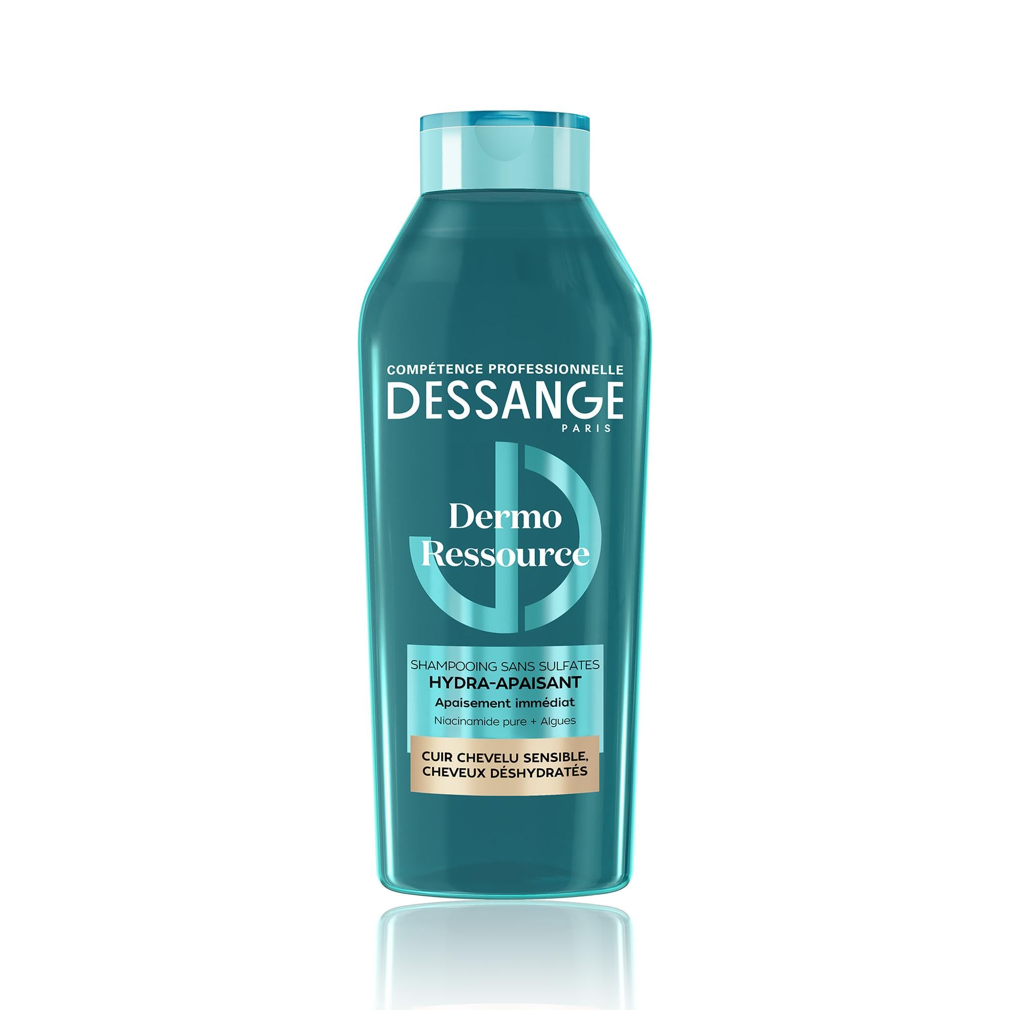 PROFESSIONAL CARE PROTOCOLS AT HOME: Since 1992, we have made Dessange's professional expertise accessible, with exceptional treatments using precious ingredients and a unique sensory experience to reveal the beauty of your hair. THE DERMO RESOURCE PROTOCOL: Apply the shampoo to wet hair. Gently massage, then rinse. For optimal results, complete the protocol with the rest of the Dermo Resource range. FORMULA ENRICHED WITH ALGAE PURE NIACINAMIDE: Free of sulfates and silicones, its formula enriched with an algae care complex and pure niacinamide soothes and calms discomfort to revitalize the scalp and hydrate the lengths. FOR RADIANT HAIR: With this soothing Dessange shampoo, your scalp is immediately soothed and your rehydrated hair regains its shine. HYDRA-SOOTHING SHAMPOO FOR SENSITIVE SCALPS: Dessange Dermo Ressource hydra-soothing shampoo soothes and calms the sensations of discomfort of sensitive scalps, victims of stress, pollution or chemical procedures.
