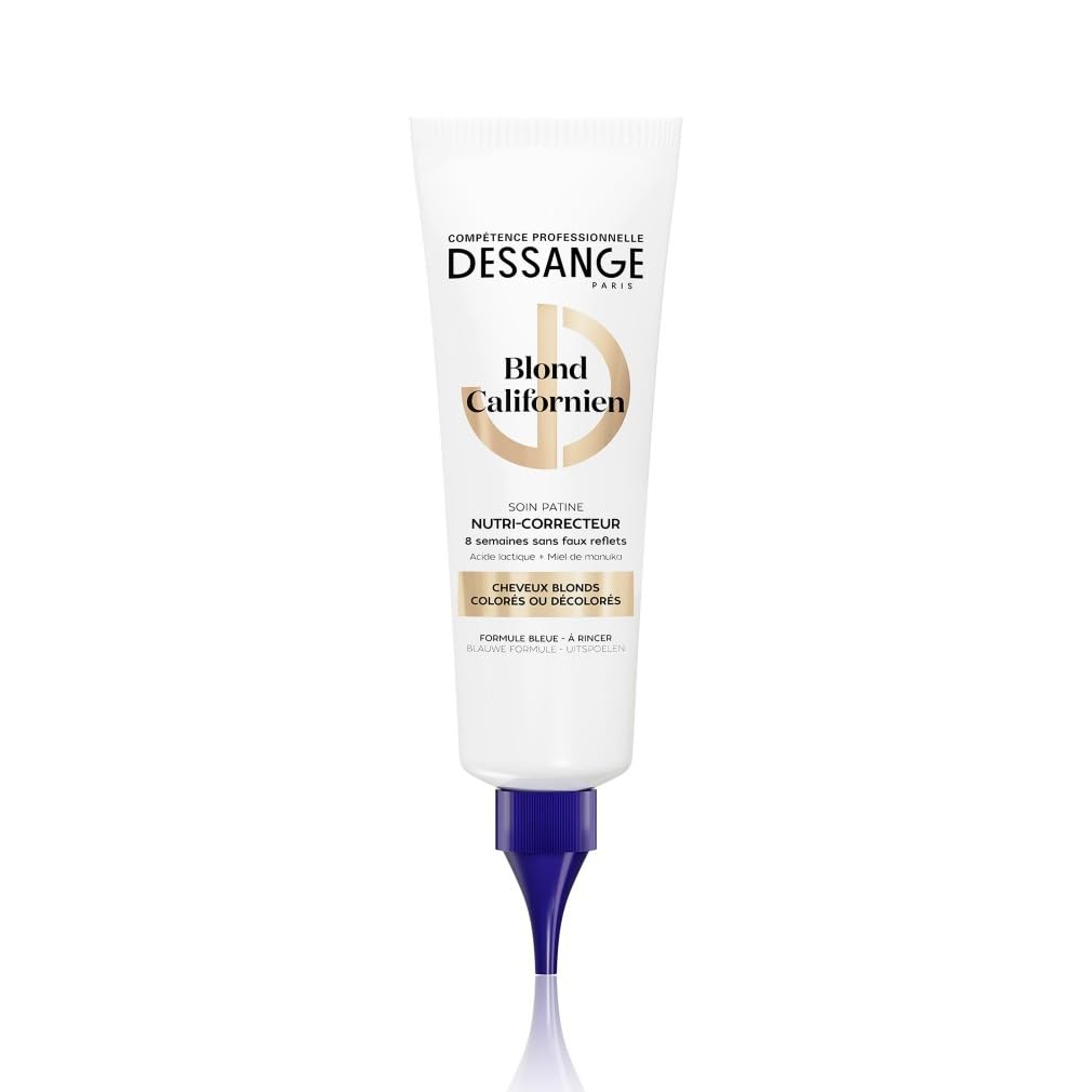 : Since 1992, Dessange Professional Expertise, an iconic French brand, has made salon expertise accessible to all women by offering professional hair care products that enhance hair without the need for a salon visit. Thanks to sensorial, innovative formulas adapted to each hair type, Dessange reveals the beauty of your hair day after day. Bleaching treatments weaken your hair, leaving it dry, brittle, and dull. The Californian Blonde Nutri-Corrective Toning Treatment was specially designed for blonde hair weakened by bleaching and highlighting processes. Enriched with lactic acid and manuka honey, it repairs, deeply nourishes, and helps eliminate yellow and orange tones, while adding shine and suppleness to your hair. For optimal results, complete the treatment with the rest of the Californian Blonde range. One tube provides up to 8 weeks of use approximately, may vary depending on usage and hair length. Ingredients 1275620 C - INGREDIENTS: AQUA WATER • CETEARYL ALCOHOL • BEHENTRIMONIUM CHLORIDE • HYDROXYPROPYL STARCH PHOSPHATE • CANDELILLA CERA CANDELILLA WAX • PROPYLENE GLYCOL • COCAMIDOPROPYL BETAINE • SCLEROTIUM GUM • MEL EXTRACT HONEY EXTRACT • ETHANOLAMINE • LINALOOL • GERANIOL • GLYCERIN • SODIUM CHLORIDE • PHENOXYETHANOL • CHLORHEXIDINE DIGLUCONATE • LIMONENE • ISOPROPYL ALCOHOL • CITRIC ACID • LACTIC ACID • BENZYL SALICYLATE • BENZYL ALCOHOL • CI 60730 ACID VIOLET 43 • PERFUME FRAGRANCE (F.I.L. Z70058966 1). P.when('A').execute(function(A) { A.on('a:expander:toggle_description:toggle:collapse', function(data) { window.scroll(0, data.expander. expander[0].offsetTop-100) }) }) Directions for use: Apply 3 to 6 pea-sized amounts of treatment to damp hair. Distribute evenly along the entire length, then emulsify with a little water. Leave on for 5 to 10 minutes and rinse. Use a maximum of once a week. Complete the routine with the rest of the range for optimal results. Safety Warning: Avoid contact with eyes. In case of direct contact with eyes, rinse immediately and thoroughly with water. Keep out of reach of children. Wear suitable gloves. Do not use for any purpose other than hair coloring. Rinse hair well after applying the product. The ingredient lists for our brand's products are regularly updated. Before using one of our products, please read the ingredient list on the packaging to ensure the ingredients are suitable for your personal use. See morePROFESSIONAL CARE PROTOCOLS AT HOME: Since 1992, we have made Dessange's professional expertise accessible, with exceptional treatments using precious ingredients and a unique sensory experience to reveal the beauty of your hair. THE CALIFORNIA BLONDE PROTOCOL: Once a week, apply 3 to 6 pea-sized amounts to damp hair. Distribute through the lengths and leave on for 5 to 10 minutes. Rinse. For optimal results, complete your routine with the rest of the California Blonde range. FORMULA ENRICHED WITH LACTIC ACID MANUKA HONEY: Its blue formula, enriched with a lactic acid and manuka honey conditioning complex, nourishes your blonde while neutralizing yellow and orange tones. FOR PURE NOURISHED BLONDE: Thanks to this Dessange nutri-correcting toner treatment, your blonde is luminous and free of unwanted tones for 8 weeks . BLUE TATINE TREATMENT FOR BLONDE HAIR: Are unwanted tones appearing on your blonde hair? The Dessange Californian Blonde Nutri-Corrective Blue Tone Treatment nourishes, illuminates blonde hair and neutralizes yellow and orange tones.Description du produit Depuis 1992, Dessange Compétence Professionnelle, marque française iconique, met l'expertise des salons à la portée de toutes les femmes en proposant des soins capillaires professionnels qui subliment les cheveux, sans passer par le salon de coiffure. Grâce à des formules sensorielles, innovantes et adaptées à chaque type de cheveu, Dessange révèle la beauté de votre chevelure jour après jour. Les traitements de décoloration affaiblissent vos cheveux, les rendant secs, cassants et ternes. Le soin patine nutri-correcteur Blond Californien a été spécialement conçu pour les cheveux blonds fragilisés par les processus de décoloration et de mèches. Enrichi en acide lactique miel de manuka, il répare, nourrit en profondeur et contribue à éliminer les reflets jaunes et orangés, tout en apportant brillance et souplesse à votre chevelure. Pour des résultats optimaux, complétez le protocole avec le reste de la gamme Blond Californien. Un tube permet jusqu'à 8 semaines d'utilisation environ, peut varier en fonction de l'usage et de la longueur des cheveux. Ingrédients 1275620 C - INGREDIENTS: AQUA WATER • CETEARYL ALCOHOL • BEHENTRIMONIUM CHLORIDE • HYDROXYPROPYL STARCH PHOSPHATE • CANDELILLA CERA CANDELILLA WAX • PROPYLENE GLYCOL • COCAMIDOPROPYL BETAINE • SCLEROTIUM GUM • MEL EXTRACT HONEY EXTRACT • ETHANOLAMINE • LINALOOL • GERANIOL • GLYCERIN • SODIUM CHLORIDE • PHENOXYETHANOL • CHLORHEXIDINE DIGLUCONATE • LIMONENE • ISOPROPYL ALCOHOL • CITRIC ACID • LACTIC ACID • BENZYL SALICYLATE • BENZYL ALCOHOL • CI 60730 ACID VIOLET 43 • PARFUM FRAGRANCE (F.I.L. Z70058966 1). P.when('A').execute(function(A) { A.on('a:expander:toggle_description:toggle:collapse', function(data) { window.scroll(0, data.expander. expander[0].offsetTop-100) }) }) Mode d'emploi Appliquez 3 à 6 noisettes de soin sur cheveux humides. Répartissez sur toute la longueur, puis émulsionnez avec un peu d'eau. Laissez poser pendant 5 à 10 min et rincez. À utiliser une fois par semaine maximum. Complétez le protocole avec le reste de la gamme pour un résultat optimal. Avertissement De Sûreté Éviter tout contact avec les yeux. En cas de contact direct avec les yeux, rincer immédiatement et abondamment avec de l'eau. Tenir hors de portée des enfants. Porter des gants appropriés. Ne pas utiliser pour un usage autre que la coloration des cheveux. Bien rincer les cheveux après application d