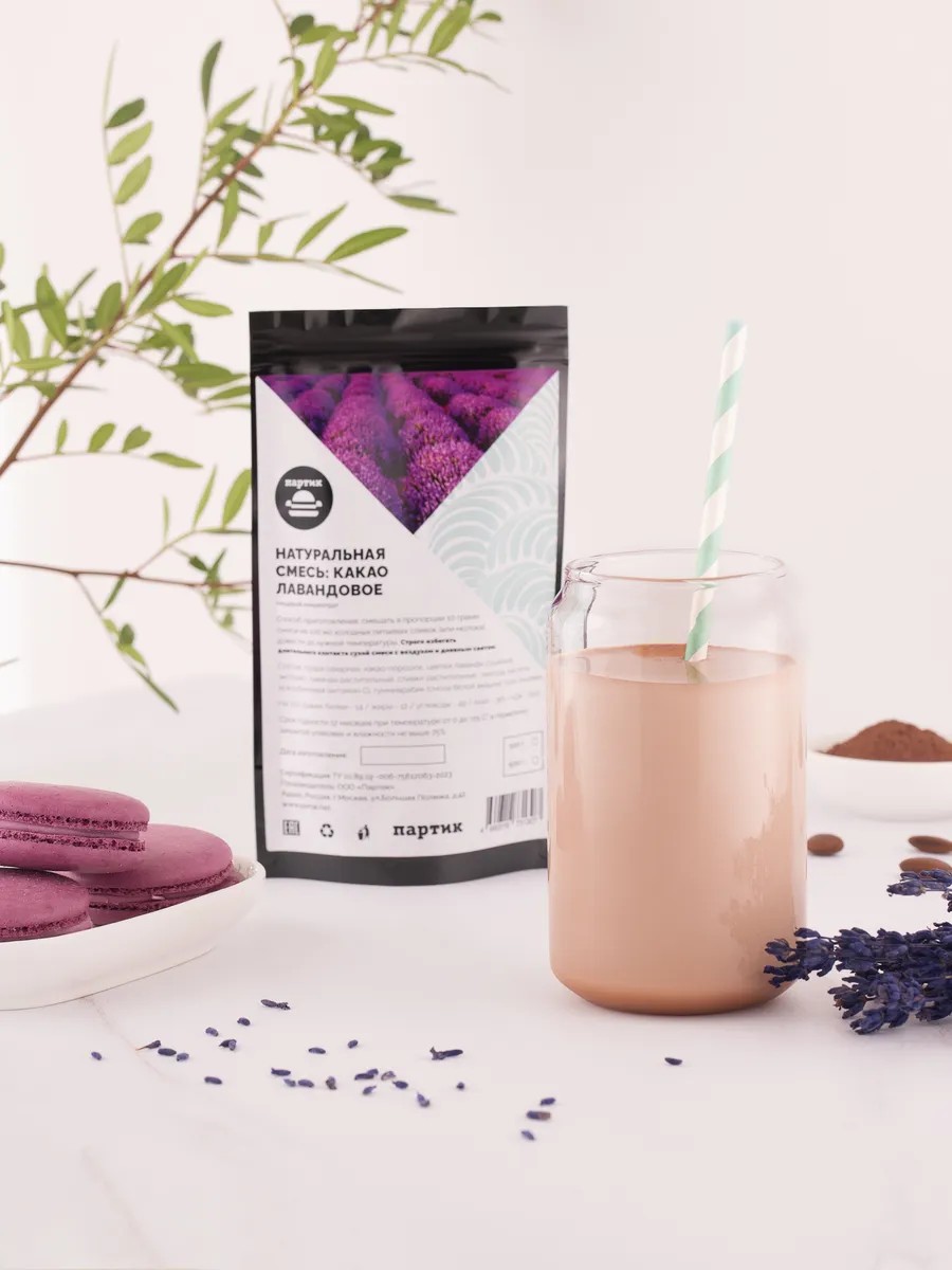 Лавандовое какао изготовлено из высококачественных ингредиентов, высушенных цветков лаванды, которые придают напитку нежный цветочный аромат.