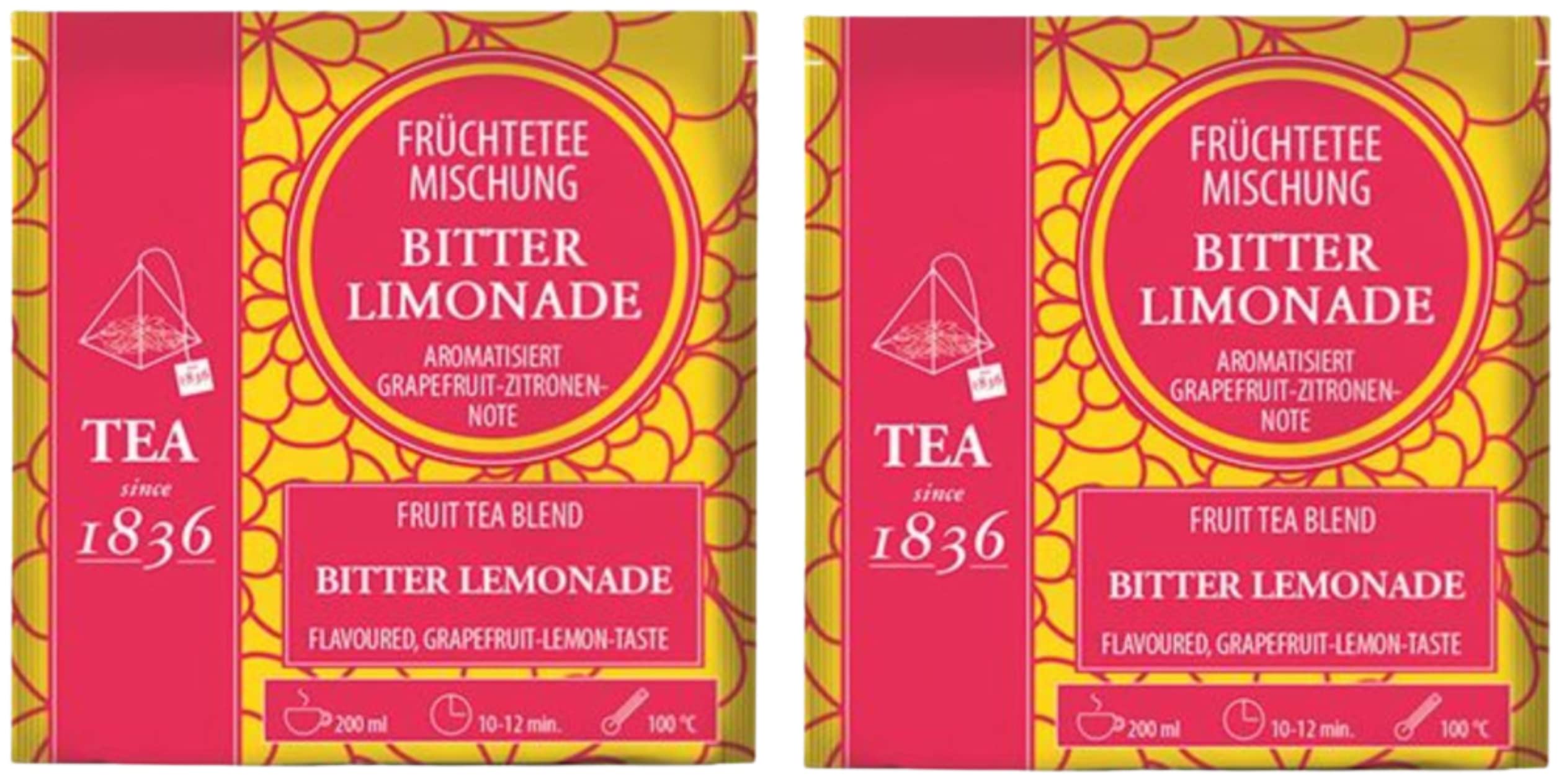 Dethlefsen Balk teemando 2 x fruit tea mix bitter lemonade grapefruitlemon nut flavoured 50 pyramid bags in a bag of 4 g 100 bags