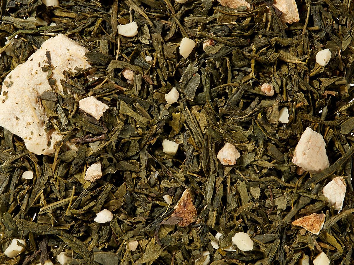 The Italian hazelnut liqueur "Frangelico", served with lime syrup and lime slices, is no longer an insider tip. We put this refreshing combination on our mild green tea base and were thrilled: wonderfully nutty and slightly creamy nuances meet refreshing sparkling citrus notes. A perfect combination and a pleasure that you can really celebrate with large citrus shells, almonds and hazelnut crunch. Also like to enjoy it cold. Salute! 2-3 minutes steeping time: 75-80 C, water temperature 4-5 teaspoons per literteemando Groene theemengsel Sencha Hazelnoot limoen Hazelnoot-limoen-aroma gearomatiseerd, 1 kg De Italiaanse hazelnootlikeur "Frangelico", geserveerd met limoensiroop en schijfjes limoen, is allang geen geheime tip meer. We hebben deze verfrissende combinatie op onze milde groene theebasis gezet en waren enthousiast: heerlijk nootachtige en licht romige nuances ontmoeten verfrissende sprankelende citrusnoten. Een perfect samenspel en een genot dat je met grote citrusschalen, amandelen en hazelnootkrokant echt kunt vieren. Ook graag koud genieten. Salute! 2-3 minuten trektijd: 75-80 C, watertemperatuur 4-5 theelepels per liter