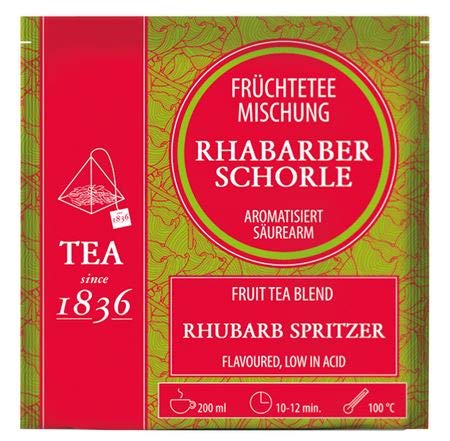 Fruit theemix Rhabarberschorle Rhabarber-Note gearomatiseerd 50 piramidezakken in zakje à 4 g
