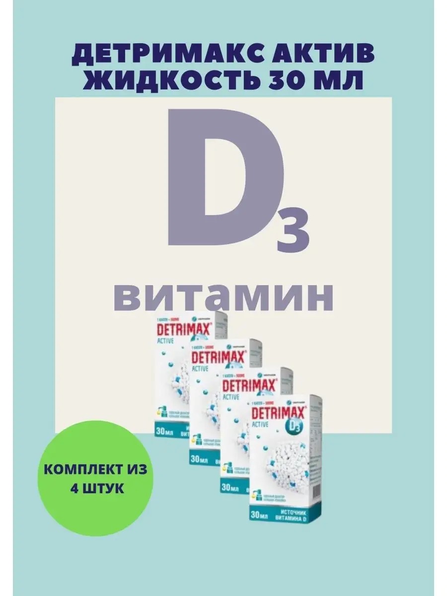 детримакс актив 30 мл жидкость флакон с дозатором-помпой. Жирорастворимый витамин D хорошо усваивается в желудочно-кишечном тракте за счет образования в среде тонкого кишечника мицеллярных соединений. холекальциферол - жизненно важный жирорастворимый витамин, необходимый для обеспечения деятельности практически всех органов и систем человеческого организма. Исследования, проведенные в России, установили, что сниженная концентрация витамина D в крови наблюдается у 50-92% взрослого населения трудоспособного возраста и детей вне зависимости от сезона года. Этот препарат рекомендуется для ежедневного приема как профилактика остеопороза и других заболеваний, связанных с дефицитом витамина D3. Кроме того, детримакс укрепляет иммунную систему и способствует улучшению эмоционального состояния.