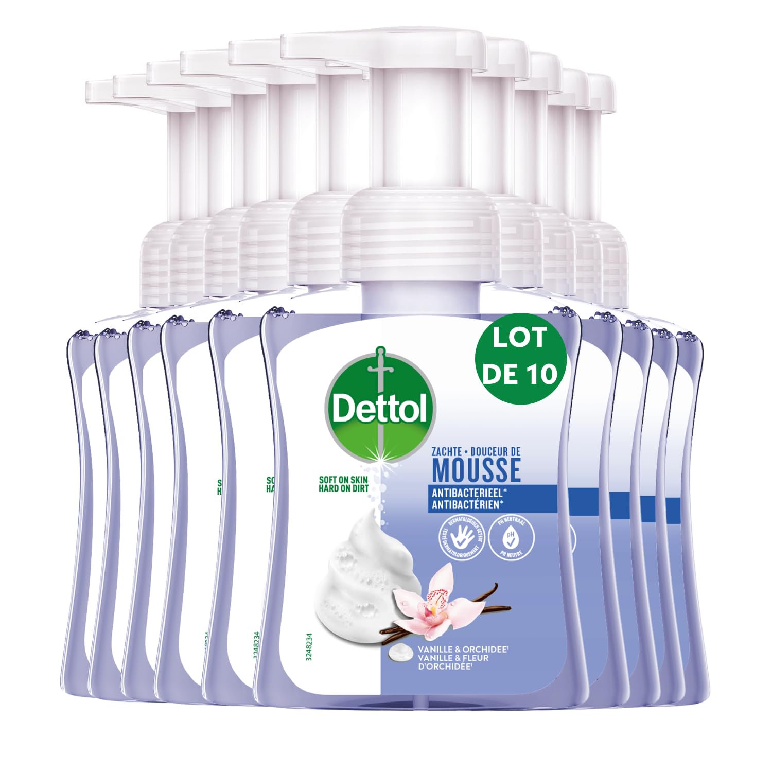 Dettol - Lot de 10 Douceur de mousse - savon main - Vanille Orchidée 250 g (Lot de 10)
