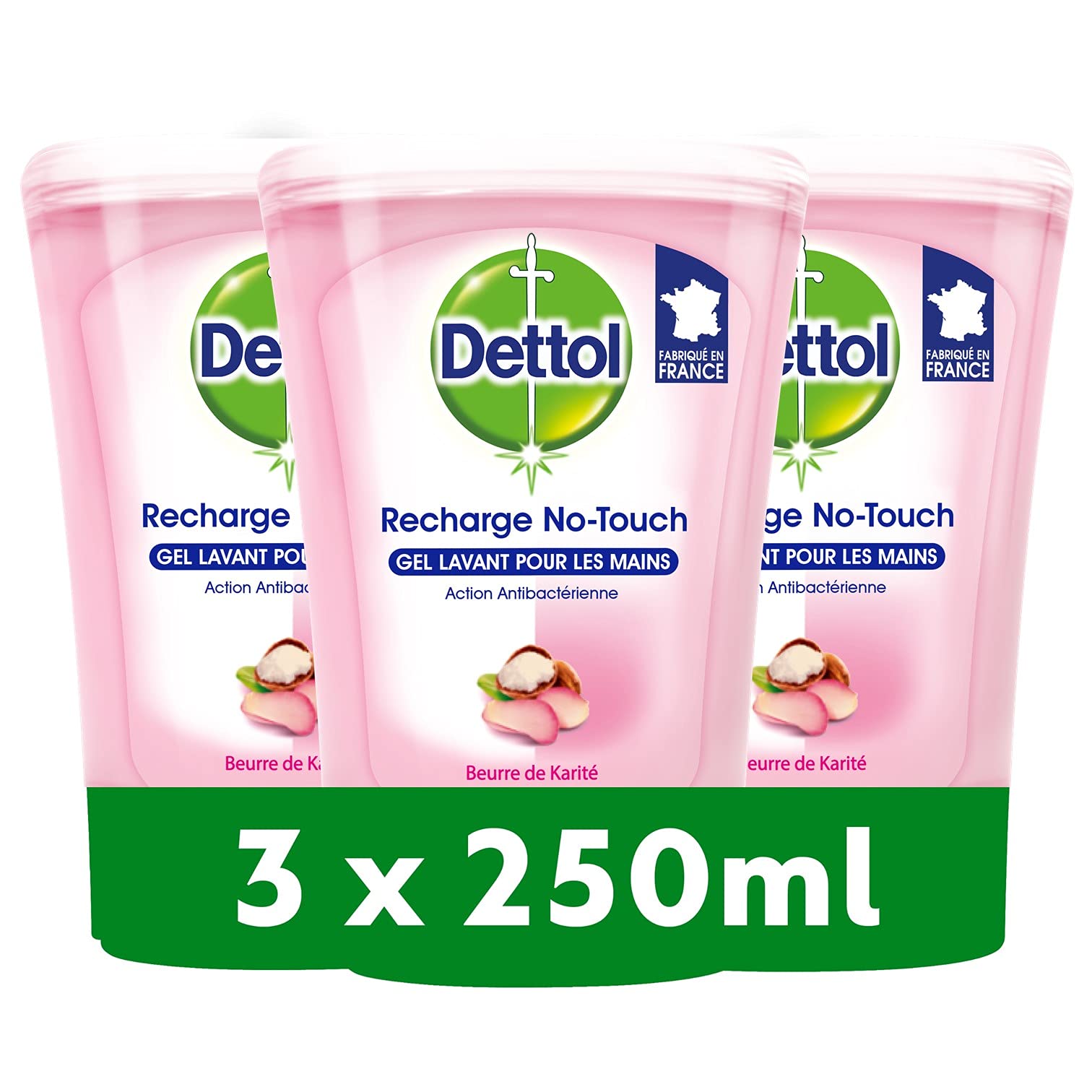 : Caution: For external use only. Keep out of reach of children. Avoid contact with eyes. In case of contact with eyes, rinse immediately and thoroughly with water. If irritation persists, contact a doctor. Store at room temperature. Ingredients: Aqua, Ammonium Lauryl Sulfate, Sodium Laureth Sulfate, Glycerin, Sodium Chloride, Cocamide MEA, Parfum, Citric Acid, Styrene Acrylates Copolymer, Salicylic Acid, Butyrospermum Parkii Butter, Rosa Damascena Flower Water, Tetrasodium EDTA, Hexyl Cinnamal, Citronellol, Amyl Cinnamal, Magnesium Nitrate, Potassium Sorbate, Sodium Benzoate, Methylchloroisothiazolinone, Magnesium Chloride, Methylisothiazolinone, CI 14700, CI 17200Washing your hands is one of the most effective ways to protect yourself from infection and combat the spread of germs. The hand sanitizer has a cleansing formula that reduces the presence of germs on your hands. The formula is dermatologically tested. Our Dettol formula helps your family maintain healthy hands, effectively cleaning them and protecting against germs. Dettol automatic dispenser refills have a pleasant Shea Butter scent. Dettol hand soaps are gentle on the skin and moisturize your hands. The refills are compatible with the Dettol No Touch Kit for touchless handwashing.Description du produit Précaution d'emploi: Pour usage externe uniquement. Tenir hors de portée des enfants. Eviter le contact avec les yeux. En cas de contact avec les yeux, rincez immédiatement et abondamment à l'eau. Si une irritation persiste, contactez un médecin. Conservez à tempéraure ambiante Ingrédients Aqua, Ammonium Lauryl Sulfate, Sodium Laureth Sulfate, Glycerin, Sodium Chloride, Cocamide MEA, Parfum, Citric Acid, Styrene Acrylates Copolymer, Salicylic Acid, Butyrospermum Parkii Butter, Rosa Damascena Flower Water, Tetrasodium EDTA, Hexyl Cinnamal, Citronellol, Amyl Cinnamal, Magnesium Nitrate, Potassium Sorbate, Sodium Benzoate, Methychloroisothiazolinone, Magnesium Chloride, Methylisothiazolinone, CI 14700, CI 17200Se laver les mains est une des mesures les plus efficaces pour se protéger des infections et combattre la propagation des germes. Le gel lavant a une formule nettoyante qui réduit la présence des germes sur les mains. La formule est testée dermatologiquement. Notre formule Dettol aide votre famille à garder des mains saines et nettoie efficacement les mains et protège des germes. Les recharges de savon pour le distributeur automatique Dettol ont une odeur agréable de Beurre de Karité. Les savons mains Dettol sont doux pour la peau et hydratent vos mains. Les recharges sont utilisables pour le KIT NO TOUCH DETTOL pour se laver les mains sans contact.Dettol - No Touch recharge Eau de Rose et Beurre de Karité Flacon de 250 ml - 3x250ml Sans parfum 83.33 ml (Lot de 3)
