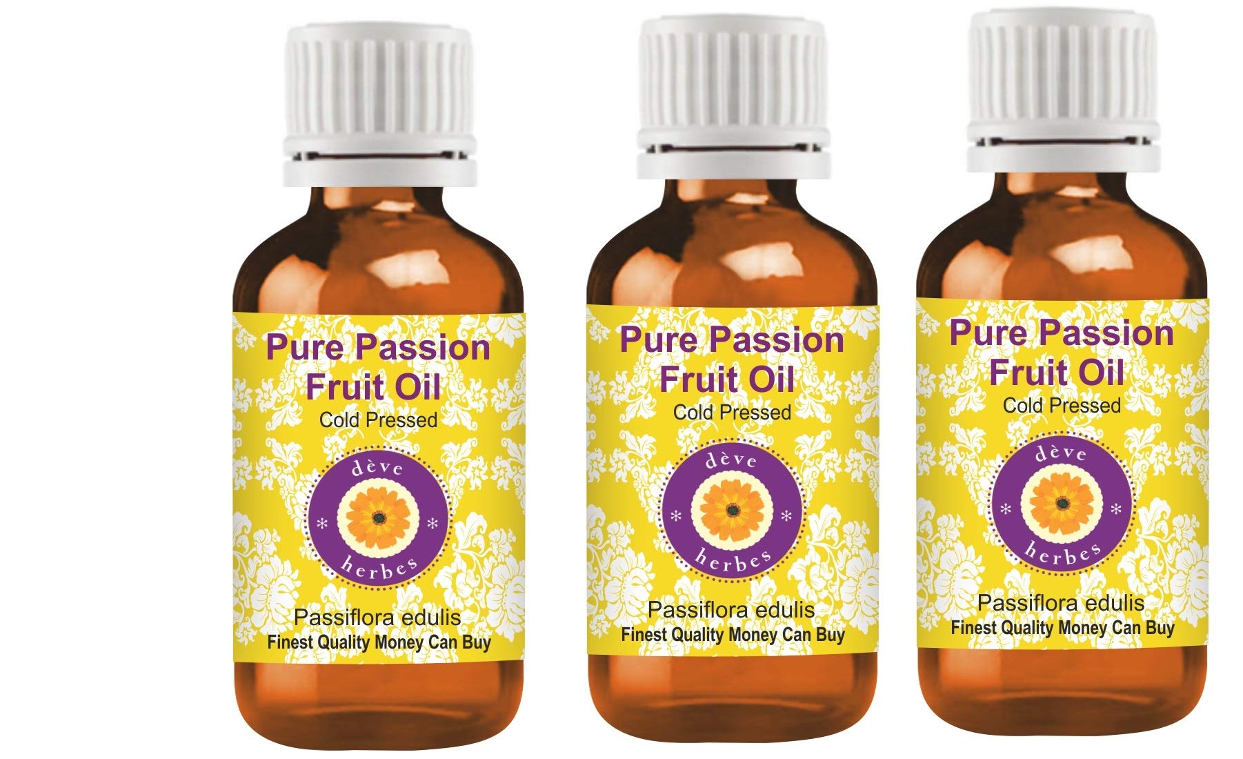 Deve Herbs Pure Passion Fruit Oil (Passiflora edulis) of natural, cold-pressed, therapeutic grade. We guarantee pure, natural, and undiluted oils of the highest quality. If you are not satisfied, you can receive a 100 refund even after using the product. Try it risk-free with our 100 money-back guarantee, no questions asked. About DEVE HERBS: Deve Herbs is a privately held essential oil company specializing in sourcing the finest natural essential oils from local regions around the world. With the world's largest range of essential oils and carrier oils, Deve Herbs has over one million highly satisfied customers in more than 100 countries. Our oils are natural, pure, undiluted, traceable, of the highest quality, and come with a 100 money-back guarantee. Our range also includes essential oil blends, aromatic oils, natural herbs, body butter, floral water, and waxes. Note: Store for at least 36 months from the packaging date printed on the box. Thank you for your purchase. INGREDIENTS Pure Passion Fruit Oil DIRECTIONS Carrier or cold-pressed oils can be applied directly to the skin. It is derived from plant sources. Use it alone or with other oils to care for your skin. It can also be used to dilute essential oils for easier absorption. Caution: This product does not have child-resistant packaging. Keep out of reach of children. See moreUse: Carrier or cold-pressed oils can be applied directly to the skin. It is derived from plant sources. Use it alone or with other oils to care for your skin. It can also be used to dilute essential oils for easier absorption. Caution: This product does not have child-resistant packaging. Keep out of reach of children. Aroma: Carrier oils are not aromatic. Most natural carrier oils have little to no aroma. We do not add synthetic fragrances to make our oils smell pleasant. Pure passion fruit oil is used for therapeutic purposes and has very little to no aroma. Use it to experience its therapeutic benefits. Quantity – 100 ml x 3 (10 oz) Container Type – High-quality amber glass bottle. Extraction Method: Cold-pressed botanical name – Passiflora edulis. Pure, natural, undiluted, therapeutic-grade carrier oil. Alcohol-free, solvent-free, vegan, and cruelty-free. If you are unsatisfied for any reason, we will replace your product or refund your money. We believe our oils will provide you with lasting therapeutic benefits. We believe in our products and have offered a "no-questions-asked money-back guarantee" for 11 years. Superior quality that you can buy for your money. 100 satisfaction and purity guaranteed – We, the manufacturer Deve Herbs, guarantee that our oils are pure and natural. We offer a 100 satisfaction guarantee on our products.Deve Herbes Passiflora edulis Pure Passion Huile de fruit de qualité thérapeutique naturelle pressée à froid (pack of three) 100 ml x 3 (10 oz) 100 ml (3er Pack)DESCRIPTION DU PRODUIT DESCRIPTION DU PRODUIT Deve Herbes Huile de fruit pure passion (Passiflora edulis) de qualité thérapeutique naturelle pressée à froid. Nous garantissons des huiles pures, naturelles et non diluées de la plus haute qualité. Wenn Sie nicht zufrieden sind, können Sie auch nach der Verwendung des Produkts eine 100 ige Rückerstattung erhalten. Testez sans risque avec la garantie de remboursement à 100 sans question. À propos de DEVE HERBES : dève herbes est une entreprise privée d'huiles essentielles qui se spécialise dans l'obtention des meilleures huiles essentielles naturelles provenant de régions locales du monde entier. Avec la plus grande gamme d'huiles essentielles et de support au monde, Dève herbes compte plus d'un million de clients très satisfaits dans plus de 100 pays. Nos huiles sont naturelles, pures, non diluées, d'origine traçable, de la plus haute qualité et avec une garantie de remboursement à 100 . Notre gamme comprend également des mélanges d'huiles essentielles, des huiles aromatiques, des herbes naturelles, du beurre corporel, de l'eau florale et des cires. Remarque : à conserver au moins 36 mois à compter de la date d'emballage indiquée sur l'emballage. Merci pour votre achat. INGRÉDIENTS Huile de fruit pure passion MODE D'EMPLOI Les huiles de support ou pressées à froid peuvent être appliquées directement sur la peau. Il est obtenu à partir de sources végétales. Utilisez-le seul ou avec d'autres huiles pour prendre soin de votre peau. Il peut également être utilisé pour diluer les huiles essentielles pour les transporter dans la peau. Attention : ce produit n'a pas de sécurité enfant. Tenir hors de portée des enfants. Voir plusUtilisation : les huiles de support ou pressées à froid peuvent être appliquées directement sur la peau. Il est obtenu à partir de sources végétales. Utilisez-le seul ou avec d'autres huiles pour prendre soin de votre peau. Il peut également être utilisé pour diluer les huiles essentielles pour les transporter dans la peau. Attention : ce produit n'a pas de sécurité enfant. Tenir hors de portée des enfants. Aroma : les huiles de support ne sont pas aromatiques. La plupart des huiles de support naturelles ont un faible ou pas d'arôme. Nous n'ajoutons pas de parfums synthétiques pour que nos huiles sentent bien. L'huile de fruit pure passion est utilisée à des fins thérapeutiques et a un très faible ou pas d'arôme. Utilisez-le pour profiter des bienfaits thérapeutiques. Quantité – 100 ml x 3 (10 oz) Type de récipient – Bouteille en verre ambré de haute qualité. Méthode d'extraction : nom botanique pressé à froid – Passiflora edulis Huile de support pure, naturelle, non diluée de qualité thérapeutique, sans alcool, sans solvant, végétalien, sans cruauté animale. Wenn Sie aus irgendeinem Grund unzufrieden sind, werden wir Ihr Produkt ersetzen oder Ihr Geld zurückerstatten. Nous pensons que nos huiles vous apporteront des bienfaits thérapeutiques durables. Nous croyons en nos produits et offrons depuis 11 ans une 