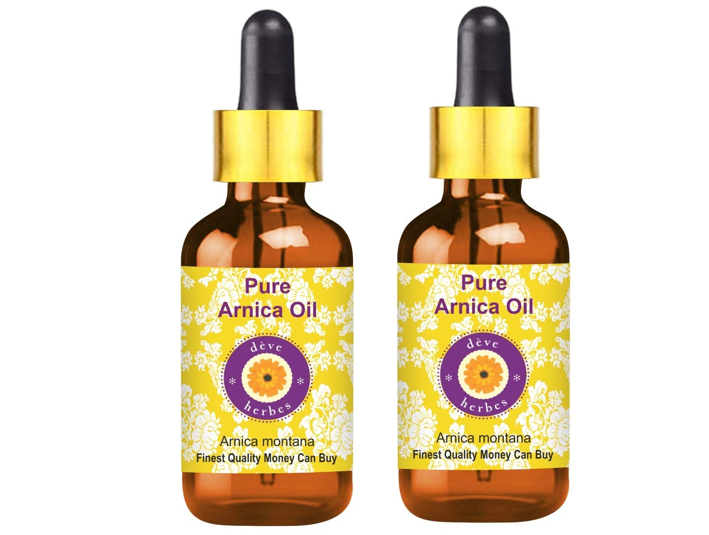 Deve Herbs Pure Arnica Oil (Arnica montana) with Glass Dropper, Natural Therapeutic Grade SAFETY WARNING CAUTION - This product does not have a child-resistant cap. Keep out of reach of children.SATISFACTION AND PURITY - We, the manufacturer Deve Herbes, guarantee that our oils are pure and natural. If you are not satisfied for any reason, we will replace your product or refund your money. We believe our oils will provide you with lasting therapeutic benefits. We believe in our products and have offered a "no questions asked" money-back guarantee for 13 years. For application on skin and hair: Cold-pressed or carrier oils can be applied directly to the skin. It is derived from plant sources. Use it alone or with other oils to nourish your skin. It can also be used to dilute essential oils for easier absorption into the skin. AROMA: Carrier oils are NOT aromatic oils. Most natural carrier oils have little to no aroma. We do not add synthetic aromas to make our oils appealing, unlike many other brands. Arnica oil is used for therapeutic purposes and has a very low or no aroma. Features: Pure, natural, undiluted, therapeutic grade, alcohol-free, solvent-free, vegan, cruelty-free, paraben-free, additive-free, preservative-free, unscented, suitable for all skin types. Carrier oils are widely used in beauty products for hydration, nourishment, and aromatherapy. Quantity – 100ml x 2 (6.76 oz), Container type – High-quality amber glass bottle with two glass droppers designed to preserve potency. Botanical name – Arnica montana. Daily skincare regimen, lightweight, non-greasy, non-sticky, can be used in all seasons.Deve herbes Huile Pure d'Arnica (Arnica montana) avec compte-gouttes en verre Qualité Thérapeutique Naturelle (lot de 2) 100ml x 2 (6.76 oz) 100mlx2 (avec compte-gouttes en verre)DESCRIPTION DU PRODUIT DESCRIPTION DU PRODUIT Deve herbes Huile Pure d'Arnica (Arnica montana) avec compte-gouttes en verre Qualité Thérapeutique Naturelle AVERTISSEMENT DE SÉCURITÉ PRÉCAUTION - Ce produit ne possède pas de bouchon de sécurité enfant. Garder loin des enfants.SATISFACTION ET PURETÉ - Nous, le fabricant Deve Herbes, garantissons que nos huiles sont pures et naturelles. Si vous n'êtes pas satisfait pour quelque raison que ce soit, nous remplacerons votre produit ou rembourserons votre montant. Nous pensons que nos huiles vous apporteront des bienfaits thérapeutiques durables. Nous croyons en nos produits et offrons un remboursement « sans questions » depuis 13 ans. Pour application sur la peau et les cheveux : les huiles pressées à froid ou de support peuvent être appliquées directement sur la peau. Il est dérivé de sources végétales. Utilisez-le seul ou avec d'autres huiles pour nourrir votre peau. Il peut également être utilisé pour diluer les huiles essentielles afin de les transporter dans la peau. ARÔME : Les huiles de support ne sont PAS des huiles aromatiques. La plupart des huiles de support naturelles ont un arôme faible ou inexistant. Nous n'ajoutons pas d'arôme de synthèse pour rendre nos huiles attractives, contrairement à beaucoup d'autres marques. L'huile d'Arnica est utilisée à des fins thérapeutiques et a un arôme très faible ou inexistant. Caractéristiques : pur, naturel, non dilué, de qualité thérapeutique, sans alcool, sans solvant, végétalien, sans cruauté envers les animaux, sans parabène, sans additifs, sans conservateurs, non désodorisé, adapté à tous les types de peau. Les huiles de support sont largement utilisées dans les produits de beauté pour l'hydratation, la nutrition et l'aromathérapie. Quantité – 100ml x 2 (6.76 oz), type de récipient – Flacon en verre ambré de haute qualité avec deux compte-gouttes en verre conçus pour préserver la puissance. Nom botanique – Arnica montana Régime de soins quotidiens de la peau, léger, non gras, non collant, peut être utilisé en toutes saisons.
