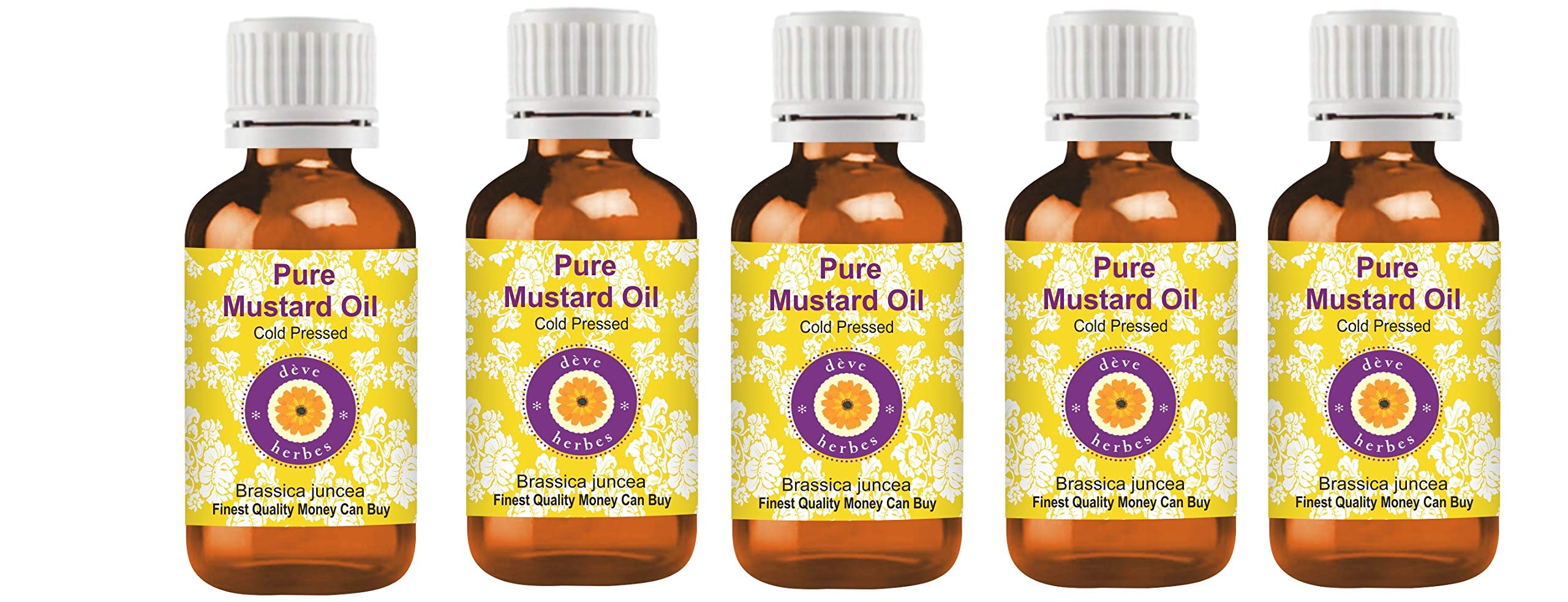 Deve Herbs Pure Mustard Oil (Brassica juncea) of natural, cold-pressed, therapeutic grade. We guarantee pure, natural, and undiluted oils of the highest quality. If you are not satisfied, you can receive a 100 refund even after using the product. Try it risk-free with our 100 no-questions-asked money-back guarantee. About DEVE HERBS: Deve Herbs is a privately held essential oil company specializing in sourcing the finest natural essential oils from local regions around the world. With the world's largest range of essential oils and carrier oils, Deve Herbs has over one million highly satisfied customers in more than 100 countries. Our oils are natural, pure, undiluted, traceable, of the highest quality, and come with a 100 money-back guarantee. Our range also includes essential oil blends, aromatic oils, natural herbs, body butter, floral water, and waxes. Note: Store for at least 36 months from the packaging date indicated on the box. Thank you for your purchase. INGREDIENTS Pure Mustard Oil DIRECTIONS Carrier or cold-pressed oils can be applied directly to the skin. It is derived from plant sources. Use it alone or with other oils to care for your skin. It can also be used to dilute essential oils for easier absorption into the skin. Caution: This product does not have child-resistant packaging. Keep out of reach of children. See moreDeve Herbes Lot de 5 huiles de moutarde pures (Brassica juncea) - Qualité thérapeutique naturelle pressée à froid - 100 ml Pack of Five 5 x 100 mlDESCRIPTION DU PRODUIT DESCRIPTION DU PRODUIT Deve Herbes Huile de moutarde pure (Brassica juncea) de qualité thérapeutique naturelle pressée à froid. Nous garantissons des huiles pures, naturelles et non diluées de la plus haute qualité. Wenn Sie nicht zufrieden sind, können Sie auch nach der Verwendung des Produkts eine 100 ige Rückerstattung erhalten. Testez sans risque avec la garantie de remboursement à 100 sans question. À propos de DEVE HERBES : dève herbes est une entreprise privée d'huiles essentielles qui se spécialise dans l'obtention des meilleures huiles essentielles naturelles provenant de régions locales du monde entier. Avec la plus grande gamme d'huiles essentielles et de support au monde, Dève herbes compte plus d'un million de clients très satisfaits dans plus de 100 pays. Nos huiles sont naturelles, pures, non diluées, d'origine traçable, de la plus haute qualité et avec une garantie de remboursement à 100 . Notre gamme comprend également des mélanges d'huiles essentielles, des huiles aromatiques, des herbes naturelles, du beurre corporel, de l'eau florale et des cires. Remarque : à conserver au moins 36 mois à compter de la date d'emballage indiquée sur l'emballage. Merci pour votre achat. INGRÉDIENTS Huile de moutarde pure MODE D'EMPLOI Les huiles de support ou pressées à froid peuvent être appliquées directement sur la peau. Il est obtenu à partir de sources végétales. Utilisez-le seul ou avec d'autres huiles pour prendre soin de votre peau. Il peut également être utilisé pour diluer les huiles essentielles pour les transporter dans la peau. Attention : ce produit n'a pas de sécurité enfant. Tenir hors de portée des enfants. Voir plus