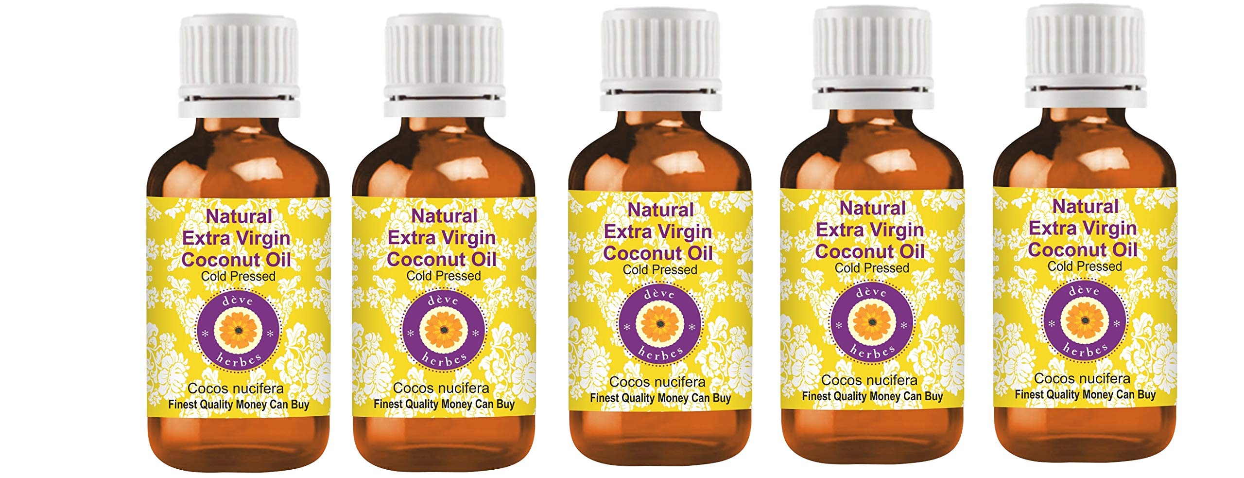 Deve Herbs Pure Natural Extra Virgin Coconut Oil (Cocos nucifera) - Natural Therapeutic Grade, Cold Pressed. Aroma: Carrier oils are not aromatic. Most natural carrier oils have little to no aroma. We do not add synthetic fragrances to make our oils smell good. Pure extra virgin coconut oil is used for therapeutic purposes and has very little to no aroma. Use it to enjoy the therapeutic benefits. We guarantee pure, natural, and undiluted oils of the highest quality. If you are not satisfied, you can receive a 100 refund even after using the product. Try it risk-free with our 100 no-questions-asked money-back guarantee. About DEVE HERBS: Dève Herbs is a privately held essential oil company specializing in sourcing the finest natural essential oils from local regions around the world. With the world's largest range of essential and carrier oils, Dève Herbs has over one million highly satisfied customers in more than 100 countries. Our oils are natural, pure, undiluted, traceable, of the highest quality, and come with a 100 money-back guarantee. Our range also includes essential oil blends, aromatic oils, natural herbs, body butter, floral water, and waxes. Note: Store for at least 36 months from the packaging date printed on the box. Thank you for your purchase. INGREDIENTS Pure, natural, extra virgin coconut oil DIRECTIONS Cold-pressed carrier oils can be applied directly to the skin. It is derived from plant sources. Use it alone or with other oils to care for your skin. It can also be used to dilute essential oils for easier absorption into the skin. Caution: This product does not have child-resistant packaging. Keep out of reach of children. See moreDeve Herbes Lot de 5 huiles de noix de coco extra vierges pures naturelles (Cocos nucifera) - Qualité thérapeutique naturelle pressée à froid - 100 ml 100 ml (5er Pack)DESCRIPTION DU PRODUIT DESCRIPTION DU PRODUIT Deve Herbes Huile de noix de coco extra vierge naturelle pure (Cocos nucifera) - Qualité thérapeutique naturelle pressée à froid. Aroma : les huiles de support ne sont pas aromatiques. La plupart des huiles de support naturelles ont un faible ou pas d'arôme. Nous n'ajoutons pas de parfums synthétiques pour que nos huiles sentent bien. L'huile de noix de coco extra vierge pure est utilisée à des fins thérapeutiques et a un très faible ou pas d'arôme. Utilisez-le pour profiter des bienfaits thérapeutiques. Nous garantissons des huiles pures, naturelles et non diluées de la plus haute qualité. Wenn Sie nicht zufrieden sind, können Sie auch nach der Verwendung des Produkts eine 100 ige Rückerstattung erhalten. Testez sans risque avec la garantie de remboursement à 100 sans question. À propos de DEVE HERBES : dève herbes est une entreprise privée d'huiles essentielles qui se spécialise dans l'obtention des meilleures huiles essentielles naturelles provenant de régions locales du monde entier. Avec la plus grande gamme d'huiles essentielles et de support au monde, Dève herbes compte plus d'un million de clients très satisfaits dans plus de 100 pays. Nos huiles sont naturelles, pures, non diluées, d'origine traçable, de la plus haute qualité et avec une garantie de remboursement à 100 . Notre gamme comprend également des mélanges d'huiles essentielles, des huiles aromatiques, des herbes naturelles, du beurre corporel, de l'eau florale et des cires. Remarque : à conserver au moins 36 mois à compter de la date d'emballage indiquée sur l'emballage. Merci pour votre achat. INGRÉDIENTS Huile de noix de coco pure et naturelle extra vierge MODE D'EMPLOI Les huiles de support pressées à froid peuvent être appliquées directement sur la peau. Il est obtenu à partir de sources végétales. Utilisez-le seul ou avec d'autres huiles pour prendre soin de votre peau. Il peut également être utilisé pour diluer les huiles essentielles pour les transporter dans la peau. Attention : ce produit n'a pas de sécurité enfant. Tenir hors de portée des enfants. Voir plus