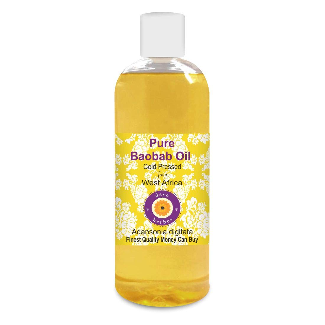 Deve Herbs Pure Baobab Oil (Adansonia digitata) 100 Natural, Therapeutic Grade, Cold-Pressed for Personal Care. WE GUARANTEE: Pure, natural, and undiluted oils of the highest quality. If you are not satisfied, you can get a 100 refund even after using the product. Try it risk-free with a 100 money-back guarantee, no questions asked. ABOUT DEVE HERBS: Deve Herbs is a privately held company specializing in sourcing the finest natural essential oils from indigenous regions around the world. With the world's largest range of essential oils and carrier oils, Deve Herbs has over one million highly satisfied customers in more than 100 countries. Our oils are natural, pure, undiluted, traceable, of the highest quality, and come with a 100 money-back guarantee. Our range also includes essential oil blends, aromatic oils, natural herbs, body butters, floral waters, and waxes. Thank you for your purchase. Note: Suitable for children 36 months and older from the packaging date printed on the box. INGREDIENTS Pure Baobab Oil DIRECTIONS Directions for use: Cold-pressed or carrier oils can be applied directly to the skin. It is derived from plant sources. Use it alone or with other oils to nourish your skin. It can also be used to dilute essential oils for easier absorption. Caution: This product does not have a child-resistant cap. Keep out of reach of children. See moreDirections for use: Cold-pressed or carrier oils can be applied directly to the skin. It is derived from plant sources. Use it alone or with other oils to nourish your skin. It can also be used to dilute essential oils for easier absorption. Caution: This product does not have a child-resistant cap. Keep out of reach of children. Aroma: Carrier oils are not aromatic oils. Most natural carrier oils have a scent that may or may not develop quickly. Unlike many other brands, we do not add synthetic fragrances to make our oils more appealing. Pure baobab oil is used for therapeutic purposes and has a very light or no scent. Tens of thousands of our customers have experienced its therapeutic benefits. Quantity: 200 ml. Container type: High-quality bottle. Botanical Name – Adansonia Digitata – 100 Pure, Natural, Undiluted, Therapeutic Grade Carrier Oil, Alcohol-Free, Solvent-Free, Vegan, Cruelty-Free, Not Tested on Animals. Premium Quality. 100 Satisfaction Purity Guarantee – We, the manufacturer, Deve Herbs, guarantee that our oils are pure and natural. We offer a 100 satisfaction guarantee on our products. If you are not satisfied for any reason, we will replace your product or refund your money. We believe our oils will provide you with lasting therapeutic benefits. We believe in our products and have offered a no-questions-asked money-back guarantee for the past 9 years.Deve Herbes Huile de baobab pure (Adansonia Digitata) 100 naturelle de qualité thérapeutique pressée à froid pour soins personnels 200 mlDESCRIPTION DU PRODUIT DESCRIPTION DU PRODUIT Huile de baobab pure de Deve Herbes (Adansonia digitata) 100 naturelle de qualité thérapeutique pressée à froid pour les soins personnels NOUS GARANTIONS : Huiles pures, naturelles et non diluées de la plus haute qualité. Si vous n'êtes pas satisfait, vous pouvez obtenir un remboursement à 100 même après avoir utilisé le produit. Essayez-le sans risque avec une garantie de remboursement à 100 sans questions. À PROPOS DE DEVE HERBES : dève herbes est une société privée spécialisée dans l'approvisionnement en huiles essentielles naturelles les plus fines provenant de régions indigènes du monde entier. Avec la plus grande gamme d'huiles essentielles et de support au monde, dève herbes compte plus d'un million de clients hautement satisfaits dans plus de 100 pays. Nos huiles sont naturelles, pures, non diluées, d'origine traçable, de la plus haute qualité et avec une garantie de remboursement à 100 . Notre gamme comprend également des mélanges d'huiles essentielles, des huiles aromatiques, des herbes naturelles, des beurres corporels, des eaux florales et des cires. Merci pour vos achats. Remarque : à partir de 36 mois à compter de la date d'emballage mentionnée sur la boîte INGRÉDIENTS Huile de baobab pure MODE D'EMPLOI Mode d'emploi : les huiles pressées à froid ou de support peuvent être appliquées directement sur la peau. Il est dérivé de sources végétales. Utilisez-le seul ou avec d'autres huiles pour nourrir votre peau. Il peut également être utilisé pour diluer les huiles essentielles pour les transporter dans la peau. Attention : ce produit n'a pas de bouchon de sécurité enfant. Tenir hors de portée des enfants. Voir plusMode d'emploi : les huiles pressées à froid ou de support peuvent être appliquées directement sur la peau. Il est dérivé de sources végétales. Utilisez-le seul ou avec d'autres huiles pour nourrir votre peau. Il peut également être utilisé pour diluer les huiles essentielles pour les transporter dans la peau. Attention : ce produit n'a pas de bouchon de sécurité enfant. Tenir hors de portée des enfants. Arôme : les huiles de support ne sont pas des huiles aromatiques. La plupart des huiles de support naturelles ont un arôme rapide ou non. Nous n'ajoutons pas d'arôme synthétique pour rendre nos huiles attrayantes, contrairement à beaucoup d'autres marques. L'huile de baobab pure est utilisée à des fins thérapeutiques et a un arôme très léger ou sans odeur. Des dizaines de milliers de nos clients ont connu ses avantages thérapeutiques. Quantité : 200 ml. Type de récipient : bouteille de haute qualité. Nom botanique – Adansonia Digitata – Huile de support 100 pure, naturelle, non diluée, de qualité thérapeutique, sans alcool, sans solvant, végétalien, sans cruauté envers les animaux, non testée sur les animaux. De qualité supérieure. Satisfaction et garantie de pureté à 100 – Nous, le fabricant, Deve Herbes, garantissons que nos huiles sont pures et naturelles. Nous offrons