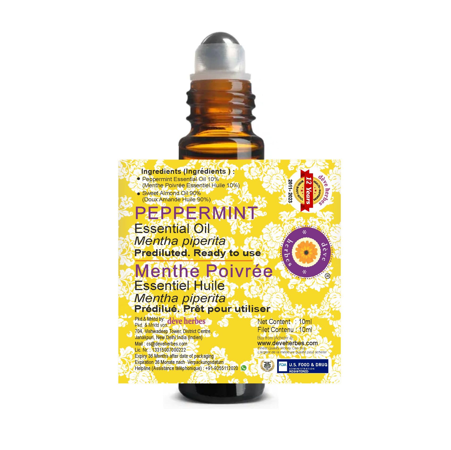 DEVE Herbes essential peppermint oil (mentha piperita) pre-dilated, ready-to-use roll-on mix for aromatherapy and topical skin application for children and adults. Ingredients / ingredients Pure essential peppermint oil and sweet almond oil the best quality that can be bought for money.100 % satisfaction and purity guarantee- at DEVE Herbes we guarantee that our oils are in and natural.We offer a 100% satisfaction guarantee on our products.If you are not satisfied for any reason, we will replace your product or refund your money.We believe that our oils will bring you permanent advantages.We have been offering a ""money back guarantee without questions"" for 12 years.High -quality, affordable oils: At DEVE Herbes we want to change the lives of as many people as possible as possible by offering them a high -quality product at a reasonable price.Warning: keep away from children.Application: Apply to the palms and rub vigorously, put your hands on the nose and inhale 7-10 times deep.You can also apply it to solar plexus, soles of the feet and peak points of the temples, wrists and neck.Quantity - 10 ml (0.33 OZ) container type - high -quality roll -on bottle.Extraction process: water vapor distillation.Botanical name: Mentha Piperita.Diluted in sweet almond oil.Pure, natural essential oil in therapeutic quality, alcohol -free, solvent -free, vegan, animal test -free, carrier oil, pre -diluted mixture.Essential peppermint oil pre-diluted roll-on mixture-our roll-on is diluted in 90 % sweet almond oil with 10 % pure etheric peppermint oil, which means that it is convenient to use because you do not have to worry about mixing with other oils. Deve Herbes ätherisches Pfefferminzöl (Mentha piperita) vorverdünnte, gebrauchsfertige Roll-on-Mischung für Aromatherapie und topische Hautanwendung für Kinder und Erwachsene. INHALTSSTOFFE / ZUTATEN Reines ätherisches Pfefferminzöl und süßes MandelölDIE BESTE QUALITÄT, DIE MAN FÜR GELD KAUFEN KANN. 100 % ZUFRIEDENHEITS- UND REINHEITSGARANTIE – Bei Deve Herbes garantieren wir, dass unsere Öle rein und natürlich sind. Wir bieten 100% Zufriedenheitsgarantie auf unsere Produkte. Wenn Sie aus irgendeinem Grund nicht zufrieden sind, werden wir Ihr Produkt ersetzen oder Ihr Geld zurückerstatten. Wir glauben, dass unsere Öle Ihnen dauerhafte Vorteile bringen werden. Wir bieten seit 12 Jahren eine ""Geld-zurück-Garantie ohne Fragen"" an. HOCHWERTIGE, ERSCHWINGLICHE ÖLE: Bei Deve Herbes möchten wir das Leben so vieler Menschen wie möglich positiv verändern, indem wir ihnen ein qualitativ hochwertiges Produkt zu einem vernünftigen Preis anbieten. WARNUNG: Von Kindern fernhalten. ANWENDUNG: Auf die Handflächen auftragen und kräftig verreiben, die Hände auf die Nase legen und 7-10 Mal tief einatmen. Sie können es auch auf Solarplexus, Fußsohlen und Pulspunkte der Schläfe, Handgelenke und Nacken auftragen. MENGE - 10 ml (0,33 oz) Behältertyp - Hochwertige Roll-on-Flasche. Extraktionsverfahren: Wasserdampfdestillation. Botanischer Name: Mentha piperita. Verdünnt in Süßmandelöl. Reines, natürliches ätherisches Öl in therapeutischer Qualität, alkoholfrei, lösungsmittelfrei, vegan, tierversuchsfrei, Trägeröl, vorverdünnte Mischung. ÄTHERISCHES PFEFFERMINZÖL VORVERDÜNNTE ROLL-ON-MISCHUNG – unser Roll-on ist mit 10 % reinem ätherischem Pfefferminzöl verdünnt in 90 % Süßmandelöl vorverdünnt, wodurch es bequem zu verwenden ist, da Sie sich keine Gedanken über das Mischen mit anderen Ölen machen müssen.Deve Herbes ätherisches Pfefferminzöl (Mentha piperita) vorverdünnte, gebrauchsfertige Roll-on-Mischung für Aromatherapie und topische Hautanwendung für Kinder und Erwachsene, 10 ml (0,33 oz)