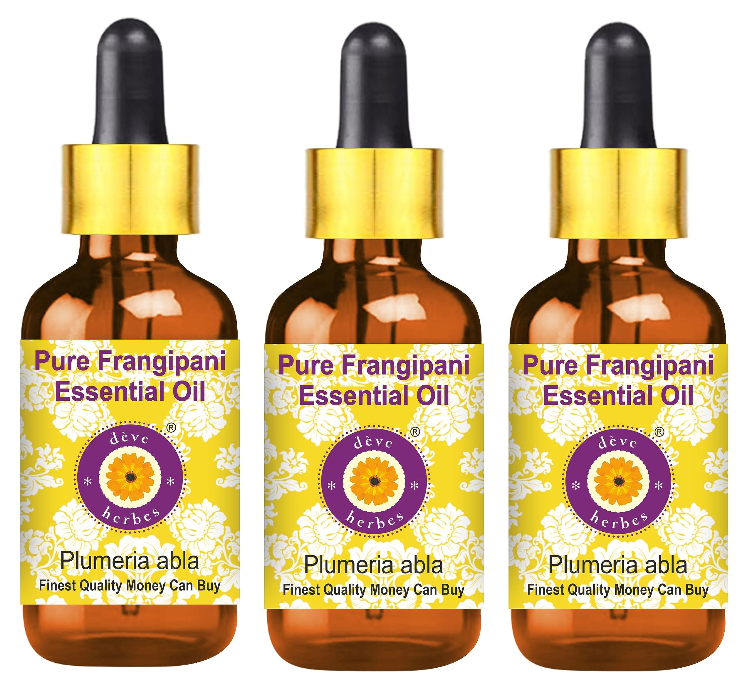 Deve Herbes Frangipani Essential Oil (Plumeria alba) with Glass Dropper Steam Distilled 100ml X 3 (Pack of Three) (10 oz)