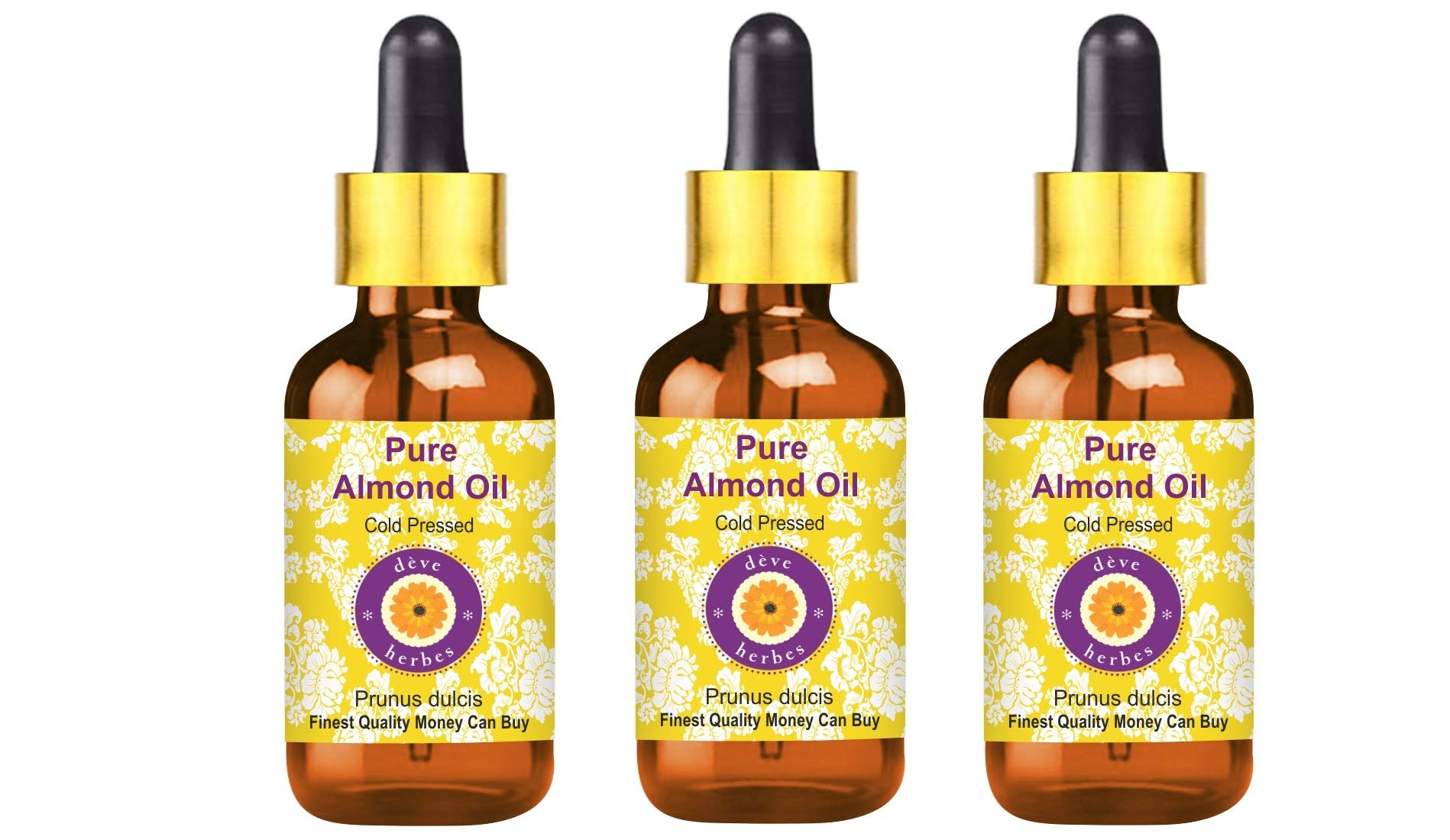 Deve Herbes Pure Almond Oil Prunus dulcis with Glass Dropper Cold Pressed Pack of Three 100ml X 3 10 oz