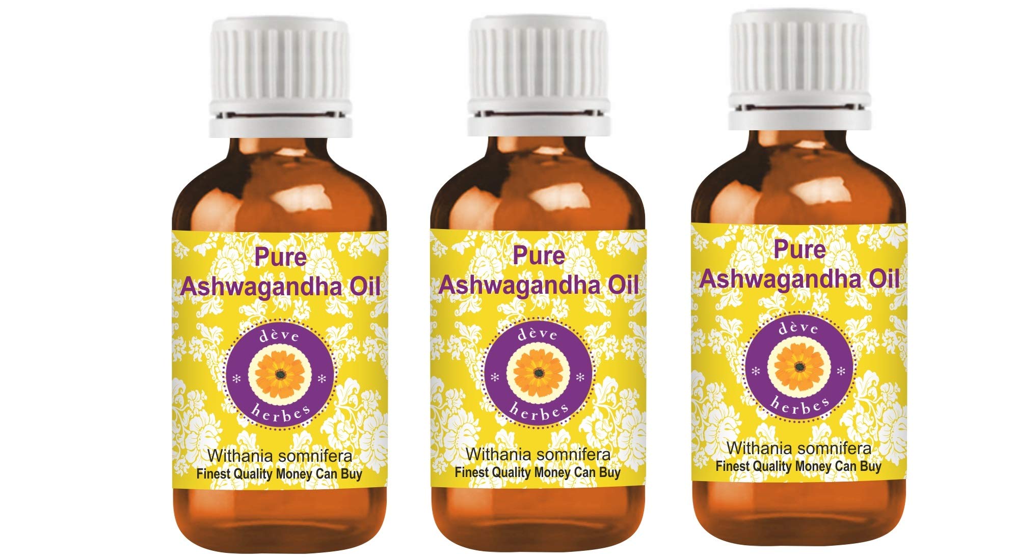 HOW TO USE: Carrier Oils can be applied directly to skin. It is derived from plant sources. Use it alone or with other oils to nourish your skin. It can also be used to dilute essential oils to carry them into the skin. CAUTION: This product does not have a child safety cap. Keep away from children. AROMA: Carrier Oils are NOT aromatic oils. Most natural carrier oils have FAINT OR NO AROMA. We do not add synthetic aroma to make our oils attractive, unlike many other brands. Pure Ashwagandha Oil is used for therapeutic purposes has very faint or no aroma. Tens of thousands of our customers have experienced its therapeutic benefits. Quantity - 100ml X 3 (10 oz) Container Type - High Quality Amber Glass Bottle. Botanical Name -Withania somnifera, Pure, Natural, Undiluted, Therapeutic Grade Carrier Oil, Alcohol Free, Solvent Free, Vegan, Cruelty Free. FINEST QUALITY MONEY CAN BUY. 100 SATISFACTION PURITY GUARANTEE - We, the manufacturer, Deve Herbes, guarantee that our oils are pure natural. We offer 100 satisfaction guarantee on our products. If you are unsatisfied for any reason we will replace your product or refund your money. We believe our oils will impart lasting therapeutic benefits to you. We believe in our products have been offering 'No Questions Asked Money Back Guarantee' for the last 12 Years.
