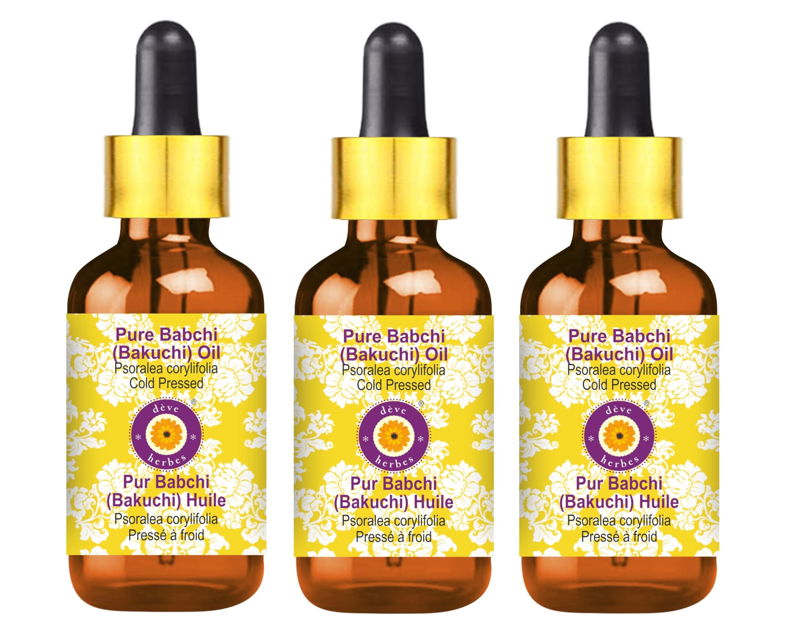 Deve Herbes Pure Babchi Oil (Psoralea corylifolia) Cold Pressed. WE GUARANTEE: Highest Quality Pure, Natural Undiluted Oils. If you are not satisfied, you can get a 100 refund even after using the product. Try it risk-free with No-Questions-Asked 100 Money Back Guarantee. ABOUT DEVE HERBES: dève herbes is a privately held company specializing in the production of the finest natural essential oils from ingredients sourced from indigenous growing regions around the world. With the largest range of essential oils in the world, Dève Herbes has almost 3 million customers in more than 140 countries. Our oils are natural, pure, undiluted, with traceable origin, of the highest quality and with a money-back guarantee. Our range also includes essential oil blends, aroma oils, natural herbs, body butters, floral waters and waxes. Note: Best Before 36 months from the date of packing stated on the box, Thanks for shopping. INGREDIENTS Pure Babchi Oil INSTRUCTIONS FOR USE HOW TO USE: Cold-pressed or Carrier oils can be applied directly to the skin. It is derived from plant sources. Use it alone or with other oils to nourish your skin. It can also be used to dilute essential oils to carry them into the skin. PLEASE NOTE: This product does not have a safety cover. Keep away from children. See moreHOW TO USE: Cold-pressed or Carrier oils can be applied directly to the skin. It is derived from plant sources. Use it alone or with other oils to nourish your skin. It can also be used to dilute essential oils to carry them into the skin. PLEASE NOTE: This product does not have a safety cover. Keep away from children. AROMA: Carrier Oils are NOT aromatic oils. Most natural carrier oils have FAINT OR NO AROMA. We don't add synthetic aromas to make our oils attractive, unlike many other brands. Pure Babchi Oil is used for therapeutic purposes and has very weak or no aroma. Tens of thousands of our customers have experienced the therapeutic benefits. Quantity - 100ml Botanical Name - Psoralea corylifolia, 100 pure, natural, undiluted, premium, therapeutic grade carrier oil, alcohol-free, solvent-free, vegan, cruelty-free, not tested on animals. THE BEST QUALITY MONEY CAN BUY. 100 Satisfaction Purity Guarantee - We, the manufacturer, Deve Herbes, guarantee that our oils are pure and natural. We offer a 100 satisfaction guarantee on our products. If you are dissatisfied for any reason, we will replace your product or refund your money. We believe our oils will give you lasting therapeutic benefits. We believe in our products and have been offering a 9-year 'No Questions Asked Money Back Guarantee'.Deve Herbes Pure Babchi-olie (Psoralea corylifolia) met glazen druppelaar koud geperst (Pack van drie) 100ml X 3 (10 oz) Deve Herbes Pure Babchi-olie (Psoralea corylifolia) Koudgeperst. WIJ GARANDEREN: Hoogste Kwaliteit Pure, Natuurlijke Onverdunde Oliën. Als u niet tevreden bent, kunt u een 100 terugbetaling krijgen, zelfs na gebruik van het product. Probeer het zonder risico met No-Questions-Asked 100 geld-terug-garantie. OVER DEVE HERBES: dève herbes is een particulier bedrijf dat gespecialiseerd is in de productie van de beste natuurlijke etherische oliën van ingrediënten afkomstig uit inheemse teeltregio's over de hele wereld. Met het grootste assortiment etherische oliën ter wereld heeft dève herbes bijna 3 miljoen klanten in meer dan 140 landen. Onze oliën zijn natuurlijk, puur, onverdund, met traceerbare oorsprong, van de hoogste kwaliteit en met geld-terug-garantie. Ons assortiment omvat ook etherische oliemengsels, aroma-oliën, natuurlijke kruiden, bodybutters, bloemenwater en was. Opmerking: Best Before 36 maanden vanaf de datum van verpakking vermeld op de doos, Bedankt voor het winkelen. INGREDIËNTEN Pure Babchi Olie GEBRUIKSAANWIJZING HOE TE GEBRUIKEN: Koud geperste of Carrier oliën kunnen direct op de huid worden aangebracht. Het is afgeleid van plantaardige bronnen. Gebruik het alleen of met andere oliën om uw huid te voeden. Het kan ook worden gebruikt om essentiële oliën te verdunnen om ze in de huid te dragen. LET OP: Dit product heeft geen veiligheidskap. Uit de buurt van kinderen houden. Meer bekijkenHOE TE GEBRUIKEN: Koud geperste of Carrier oliën kunnen direct op de huid worden aangebracht. Het is afgeleid van plantaardige bronnen. Gebruik het alleen of met andere oliën om uw huid te voeden. Het kan ook worden gebruikt om essentiële oliën te verdunnen om ze in de huid te dragen. LET OP: Dit product heeft geen veiligheidskap. Uit de buurt van kinderen houden. AROMA: Carrier Oliën zijn GEEN aromatische oliën. De meeste natuurlijke drageroliën hebben FAINT OF GEEN AROMA. We voegen geen synthetisch aroma toe om onze oliën aantrekkelijk te maken, in tegenstelling tot veel andere merken. Pure Babchi Oil wordt gebruikt voor therapeutische doeleinden en heeft zeer zwak of geen aroma. Tienduizenden van onze klanten hebben de therapeutische voordelen ervaren. Hoeveelheid - 100ml X 3 (10 oz) Container Type - Drie hoogwaardige amberglazen fles van 100ml elk met drie glazen druppelaar. Botanische naam - Psoralea corylifolia, 100 zuiver, natuurlijk, onverdund, premium, therapeutische kwaliteit dragerolie, alcoholvrij, oplosmiddelvrij, veganistisch, wreedheidsvrij, niet getest op dieren. DE BESTE KWALITEIT GELD KAN KOPEN. 100 tevredenheid zuiverheid garantie - Wij, de fabrikant, Deve Herbes, garanderen dat onze oliën puur en natuurlijk zijn. Wij bieden 100 tevredenheidsgarantie op onze producten. Als u om welke reden dan ook ontevreden bent, vervangen wij uw product of betalen uw geld terug. Wij geloven dat onze oliën u blijvende therapeutische voordelen zullen geven. Wij geloven in onze producten en bieden al 9 jaar 'Geen vragen gesteld geld terug garantie'.