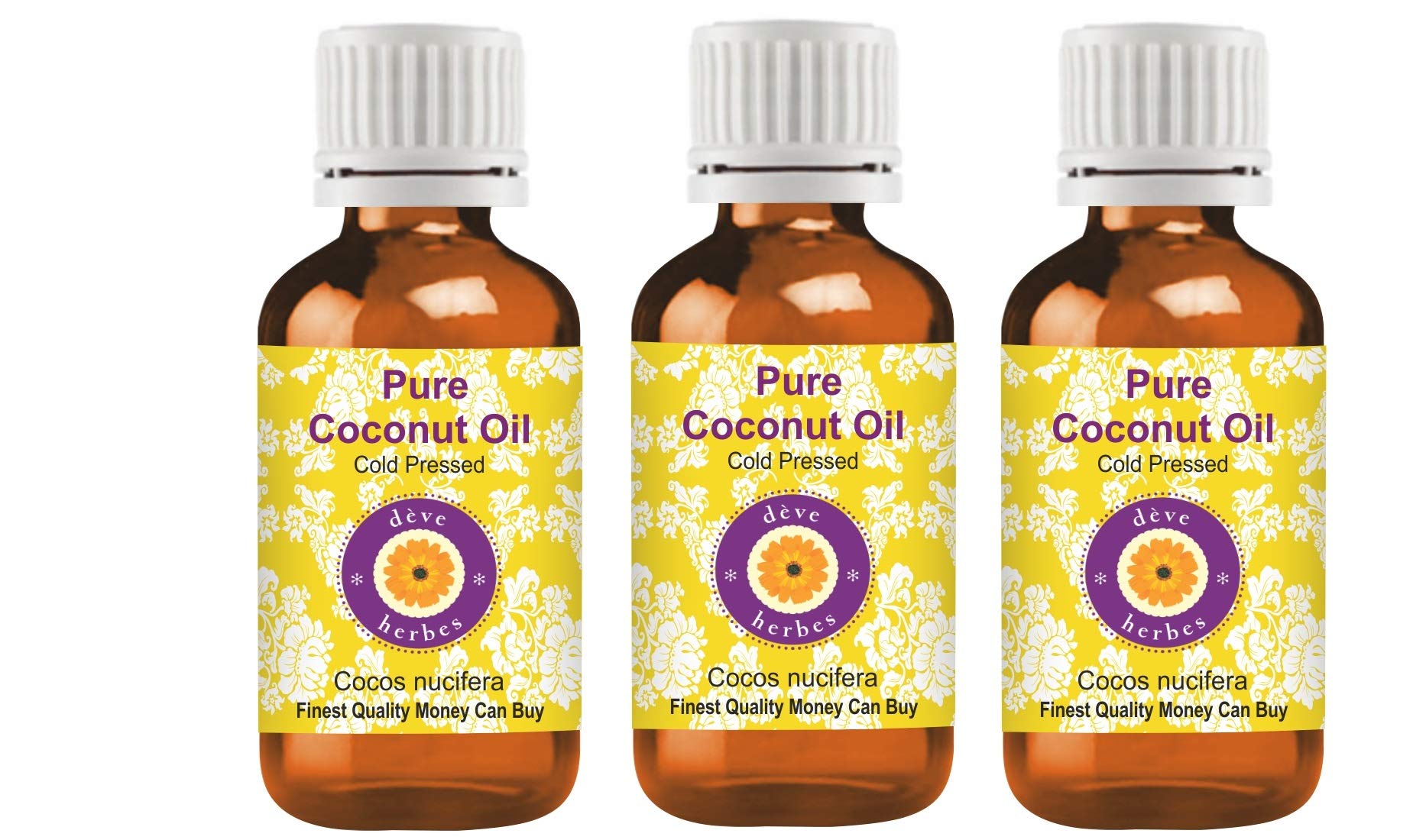Deve Herbes Pure Coconut Oil (Cocos nucifera) Cold Pressed (Pack of three) 100ml X 3 (10 oz)