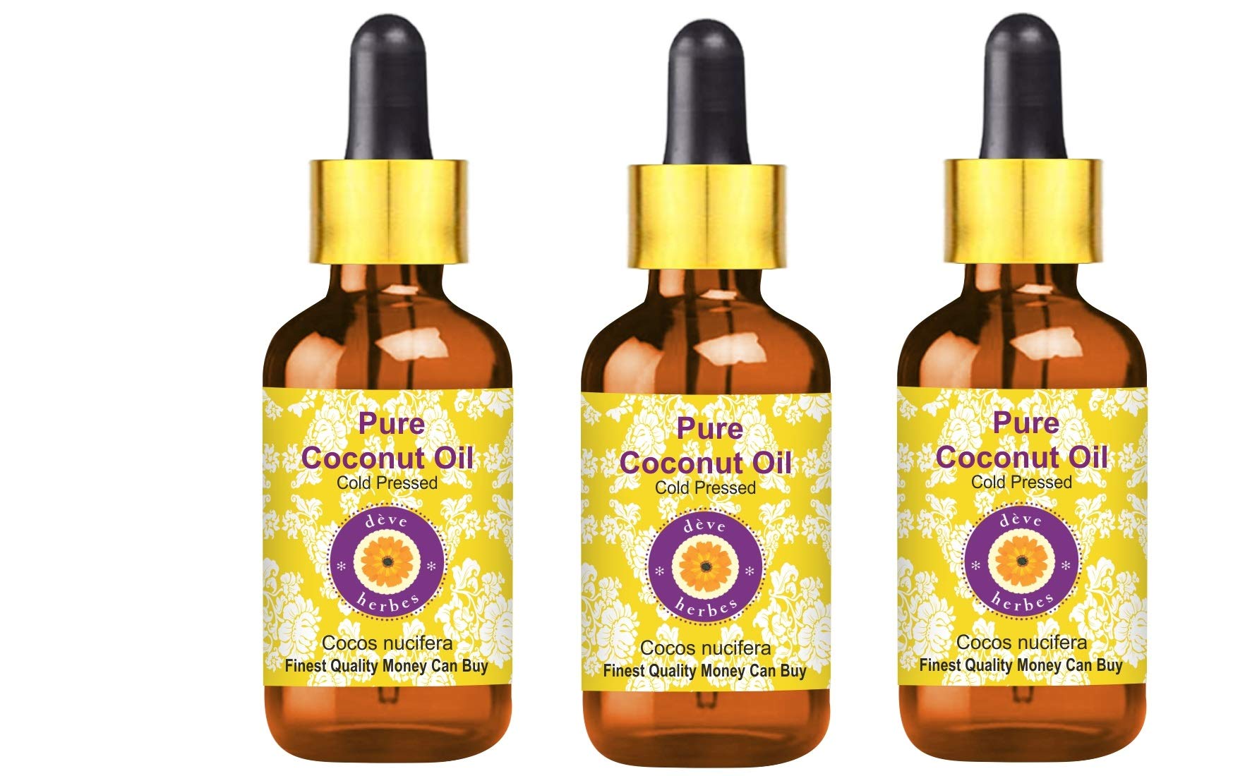 Deve Herbes Pure Coconut Oil Cocos nucifera with Glass Dropper 100 Natural Therapeutic Grade Cold Pressed for Personal Care Pack of Three 100ml X 3 10 oz