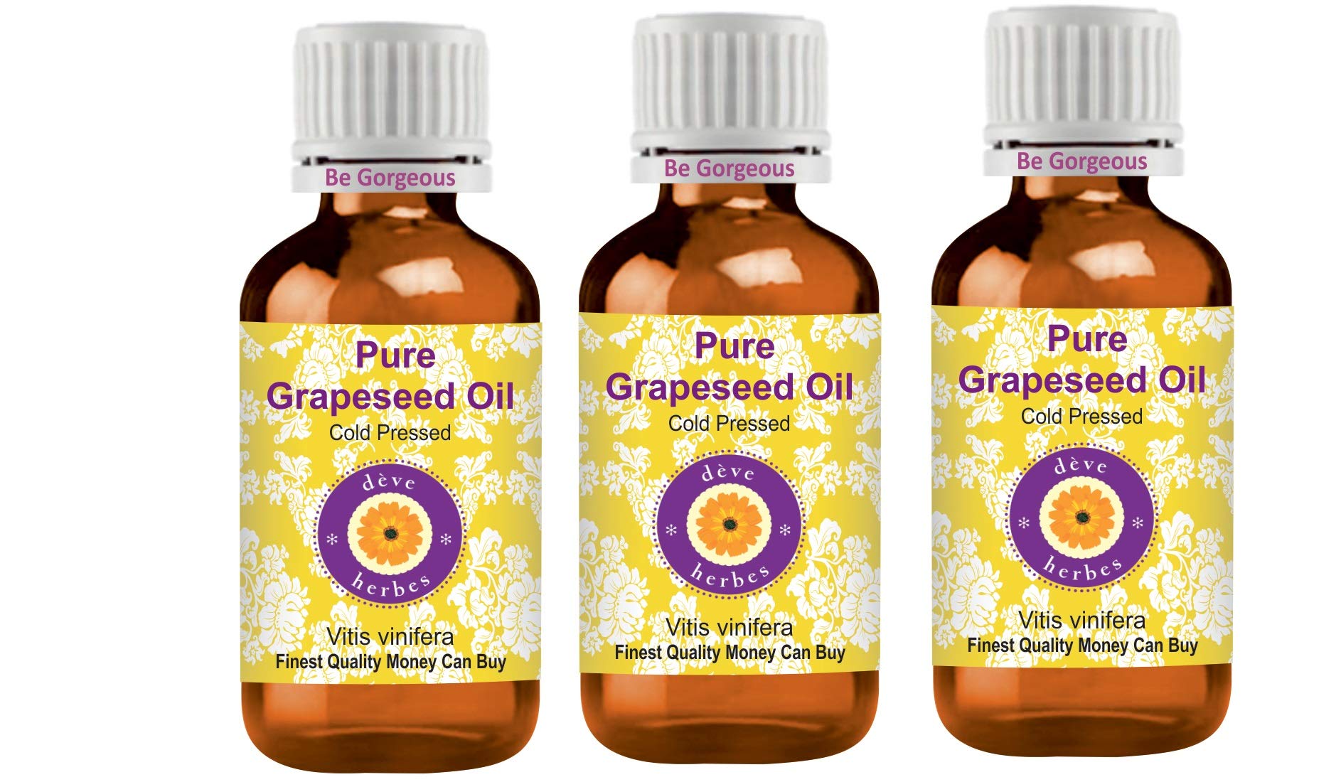 Deve Herbes Pure Grape Seed Oil (Vitis vinifera) 100 natural therapeutic grade cold pressed for personal care WE GUARANTEE: Highest quality pure, natural and undiluted oils. If you are not satisfied, you can get a 100 refund even after using the product. Try it risk-free with no-questions-asked 100 money back guarantee. ABOUT DEVE HERBES: Dève Herbs is a privately held essential oil company specialized in sourcing the finest natural essential oils from native crop areas around the world. With the largest range of essential and carrier oils in the world, Deève Herbs has over a million highly satisfied customers in more than 100 countries. Our oils are natural, pure, undiluted, with traceable origin, of the highest quality and with a 100 money back guarantee. Our range also includes essential oil blends, aroma oils, natural herbs, body butters, floral waters and waxes.Thanks for shopping Note: Best before 36 months from date of packaging stated on the box INSTRUCTIONS FOR USE How to use: Cold-pressed or carrier oils can be applied directly to the skin. It is derived from plant sources. Use it alone or with other oils to nourish your skin. It can also be used to dilute essential oils to carry them into the skin. Please note: this product does not have a child safety hood. Keep away from children.How to use: Cold-pressed or carrier oils can be applied directly to the skin. It is derived from plant sources. Use it alone or with other oils to nourish your skin. It can also be used to dilute essential oils to carry them into the skin. Please note: this product does not have a child safety hood. Keep away from children. AROMA: Carrier oils are not aromatic oils. Most natural carrier oils have FAINT OR NO AROMA. We don't add synthetic aromas to make our oils attractive, unlike many other brands. Pure Grape Seed Oil is used for therapeutic purposes and has very weak or no aroma. Tens of thousands of our customers have experienced its therapeutic benefits. Quantity - 100ml Botanical name - Vitis vinifera, 100 pure, natural, undiluted, premium, therapeutic grade carrier oil, alcohol-free, solvent-free, vegan, cruelty-free, not tested on animals. Method of extraction: Cold pressed. FINEST QUALITY MONEY CAN BUY. 100 SATISFACTION PURITY GUARANTEE - We, the manufacturer, Deve Herbes, guarantee that our oils are pure and natural. We offer a 100 satisfaction guarantee on our products. If for any reason you are not satisfied, we will replace your product or refund your money. We believe our oils will give you lasting therapeutic benefits. We believe in our products and have been offering a 'No Questions Asked Money Back Guarantee' for 9 years.Deve Herbes Pure druivenpitolie (Vitis vinifera) 100 natuurlijke therapeutische kwaliteit koud geperst voor persoonlijke verzorging (Pack van drie) 100ml X 3 (10 oz) Deve Herbes Pure Druivenpitolie (Vitis vinifera) 100 natuurlijke therapeutische kwaliteit koud geperst voor persoonlijke verzorging WE GARANTIE: Hoogste kwaliteit zuivere, natuurlijke en onverdunde oliën. Als u niet tevreden bent, kunt u een 100 terugbetaling krijgen, zelfs na gebruik van het product. Probeer het risico-vrij met no-questions-Asked 100 geld-terug-garantie. OVER DEVE HERBES: dève kruiden is een particulier bedrijf voor etherische olie gespecialiseerd in de aankoop van de beste natuurlijke etherische oliën uit inheemse gewasgebieden over de hele wereld. Met het grootste assortiment essentiële en drageroliën ter wereld heeft deève kruiden meer dan een miljoen zeer tevreden klanten in meer dan 100 landen. Onze oliën zijn natuurlijk, zuiver, onverdund, met traceerbare oorsprong, van de hoogste kwaliteit en met 100 geld terug garantie. Ons assortiment omvat ook etherische olie blends, aroma-oliën, natuurlijke kruiden, bodyboters, bloemenwater en was.Bedankt voor het winkelen Opmerking: Beste vóór 36 maanden vanaf datum van verpakking vermeld op de doos GEBRUIKSAANWIJZING Hoe te gebruiken: koudgeperste of drageroliën kunnen direct op de huid worden aangebracht. Het is afgeleid van plantaardige bronnen. Gebruik het alleen of met andere oliën om je huid te voeden. Het kan ook worden gebruikt om essentiële oliën te verdunnen om ze in de huid te dragen. Let op: dit product heeft geen kinderveiligheidskap. Uit de buurt van kinderen houden.Hoe te gebruiken: koudgeperste of drageroliën kunnen direct op de huid worden aangebracht. Het is afgeleid van plantaardige bronnen. Gebruik het alleen of met andere oliën om je huid te voeden. Het kan ook worden gebruikt om essentiële oliën te verdunnen om ze in de huid te dragen. Let op: dit product heeft geen kinderveiligheidskap. Uit de buurt van kinderen houden. AROMA: drageroliën zijn geen aromatische oliën. De meeste natuurlijke drageroliën hebben FAINT OF GEEN AROMA. We voegen geen synthetisch aroma toe om onze oliën aantrekkelijk te maken, in tegenstelling tot veel andere merken. Pure Druivenpitolie wordt gebruikt voor therapeutische doeleinden en heeft zeer zwak of geen aroma. Tienduizenden van onze klanten hebben zijn therapeutische voordelen ervaren. Hoeveelheid - 100ml X 3 (10 oz) Container Type - Drie hoge kwaliteit Amber Glass Fles van 100ml elk met drie interne Plastic Euro Dropper. Botanische naam - Vitis vinifera, 100 zuiver, natuurlijk, onverdund, premium, therapeutische kwaliteit dragerolie, alcoholvrij, oplosmiddelvrij, veganistisch, wreedheidsvrij, niet getest op dieren. Wijze van extractie: Koud geperst. FIJNSTE KWALITEIT GELD KAN KOPEN. 100 tevredenheid zuiverheid GARANTIE - Wij, de fabrikant, Deve Herbes, garanderen dat onze oliën puur en natuurlijk zijn. Wij bieden 100 tevredenheidsgarantie op onze producten. Als u om welke reden dan ook niet tevreden bent, vervangen wij uw product of terugbetaling van uw geld. Wij geloven dat onze oliën u blijvende therapeutische voordelen zullen geven. Wij geloven in onze producten en bieden al 9 jaar 'Geen vragen gesteld geld terug garantie' aan.