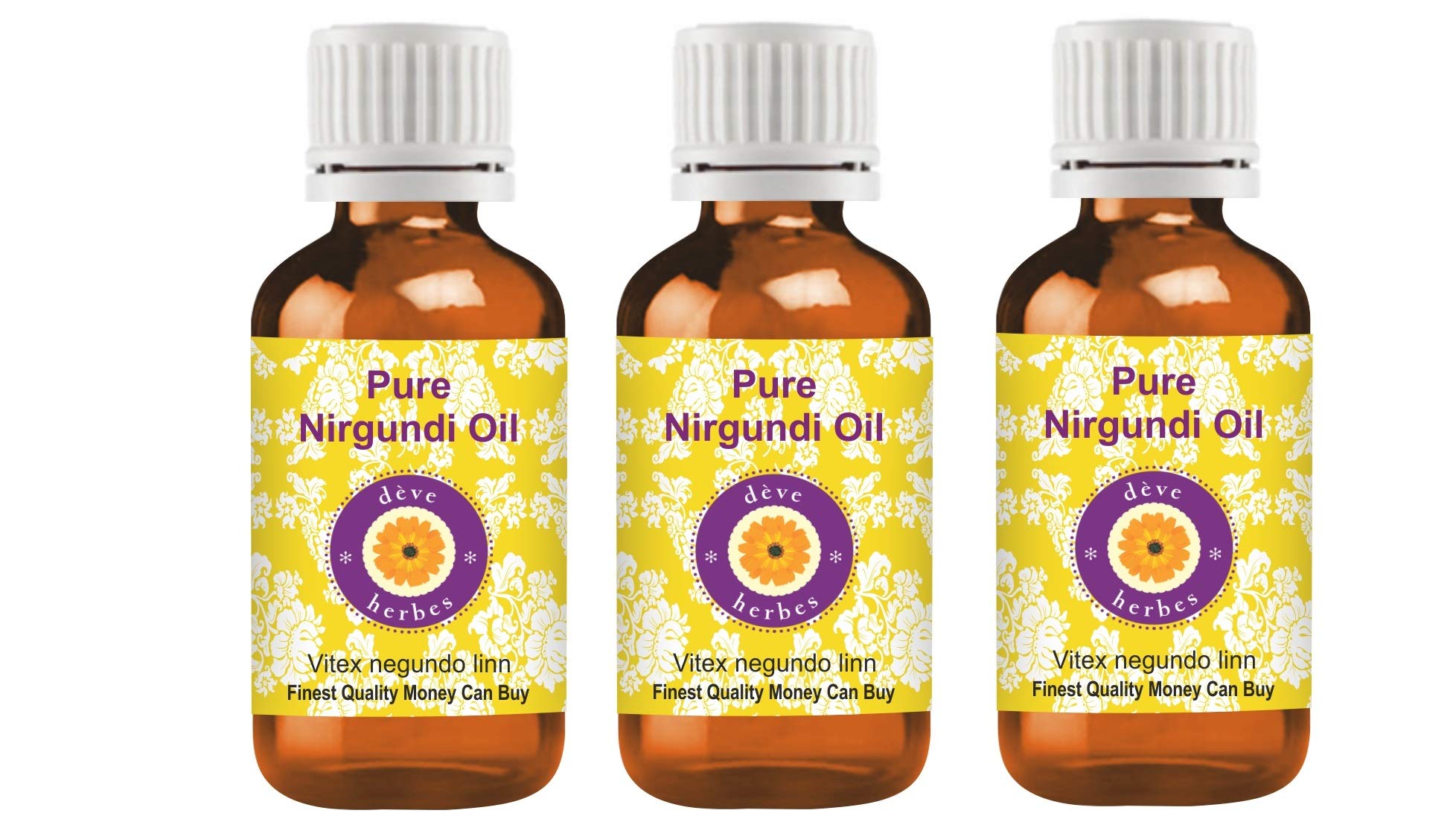 SATISFACTION AND PURITY - We, the manufacturer, Deve Herbs, guarantee that our oils are pure and natural. If you are not satisfied for any reason, we will replace your product or refund your money. We believe our oils will provide you with lasting therapeutic benefits. We believe in our products and have offered a no-questions-asked money-back guarantee for 13 years. FLAVOR: Vegetable oils are NOT flavored oils. Most natural vegetable oils have NO FLAVOR. We do not add synthetic flavorings to make our oils appealing, unlike many other brands. Nirgundi oil is used for therapeutic purposes and has no flavoring. FLAVOR: Carrier oils are NOT flavored oils. Most natural carrier oils have LITTLE OR NO FLAVOR. We do not add synthetic flavorings to make our oils appealing, unlike many other brands. Kumquat oil is used for therapeutic purposes and has a very faint or no aroma. Features: Pure, natural, undiluted, therapeutic grade, alcohol-free, solvent-free, cruelty-free, paraben-free, single-ingredient, additive-free, preservative-free, unrefined, vegan, suitable for all skin types. Additional Uses: Carrier oils are widely used in beauty products for moisturizing, nourishing, and aromatherapy. Quantity: 100ml x 3 (10 oz). Container Type: High-quality amber glass bottle designed to preserve potency. Botanical Name: Vitex negundo linn. Daily Skincare Regimen: Lightweight, non-greasy, non-sticky, suitable for all seasons.SATISFACTION ET PURETÉ - Nous, le fabricant, Deve Herbes, proposons que nos huiles soient pures et naturelles. Si vous n'êtes pas satisfait pour une raison quelconque, nous remplacerons votre produit ou vous rembourserons le montant. Nous pensons que nos huiles vous apporteront des bienfaits thérapeutiques durables. Nous croyons en nos produits et proposons un remboursement sans poser de questions depuis 13 ans. ARÔME : Les huiles végétales ne sont PAS des huiles aromatiques. La plupart des huiles végétales naturelles n'ont PAS D'ARÔME. Nous n'ajoutons pas d'arôme synthétique pour rendre nos huiles attrayantes, contrairement à de nombreuses autres marques. L'huile Nirgundi est utilisée à des fins thérapeutiques et n'a pas d'arôme. ARÔME : Les huiles de support ne sont PAS des huiles aromatiques. La plupart des huiles de support naturelles ont un ARÔME FAIBLE OU AUCUN. Nous n'ajoutons pas d'arôme synthétique pour rendre nos huiles attrayantes, contrairement à de nombreuses autres marques. Kumquat huile est utilisée à des fins thérapeutiques et a un arôme très faible ou nul. Caractéristiques - Pure, naturelle, non diluée, de qualité thérapeutique, sans alcool, sans solvant, sans cruauté, sans paraben, ingrédient unique, sans additifs, sans conservateurs, non désodorisée, végétalienne, convient à tous les types de peau. Utilisation supplémentaire - Les huiles de support sont largement utilisées dans les produits de beauté pour l'hydratation, la nutrition et l'aromathérapie. Quantité - 100ml X 3 (10 oz), Type de contenant - Bouteille en verre ambré de haute qualité conçue pour préserver la puissance. Nom botanique - Vitex negundo linn, Régime de soins quotidiens de la peau, Léger, Non gras, Non collant, Pour toutes les saisons.Deve Herbes Pure Huile de Nirgundi (Vitex negundo linn) qualité thérapeutique naturelle (Paquet de Trois) 100ml X 3 (10 oz) 100 ml (Lot de 3)