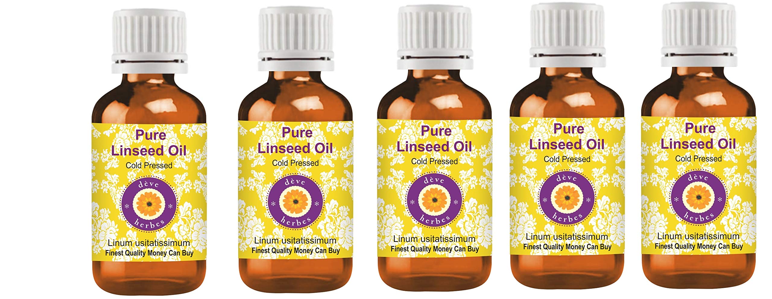 Deve Herbes Pure Linseed Oil Linum usitatissimum 100 Natural Therapeutic Grade Cold Pressed Pack of Five 5 x 100 ml