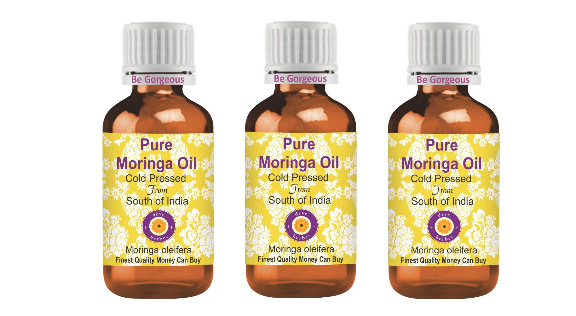Deve Herbes Pure Moringa Oil (Moringa oleifera) 100 natural therapeutic grade cold pressed for personal care WE GUARANTEE: Highest quality pure, natural and undiluted oils. If you are not satisfied, you can get a 100 refund even after using the product. Try it risk-free with no questions asked 100 money back guarantee. ABOUT DEVE HERBES: Dève Herbs is a privately held essential oil company that specializes in sourcing the finest natural essential oils from native crop areas around the world. With the largest range of essential carrier oils in the world, Dève Herbs has over a million highly satisfied customers in over 100 countries. Our oils are natural, pure, undiluted, with traceable origin, of the highest quality and with a 100 money back guarantee. Our range also includes essential oil blends, aroma oils, natural herbs, body butters, flower waters and waxes.Thanks for shopping INSTRUCTIONS FOR USE HOW TO USE - Cold pressed or Carrier oils can be applied directly to the skin. Derived from plant sources, each oil has individual properties and suitability for use. They can be used alone or with other oils to nourish your skin. Carrier oils are also used to dilute essential oils and absolutes to carry essential oils into the skin and body. Carrier oils do not have a concentrated aroma, but some have a mild scent.Customs duties or border taxes of customer's country are payable by customer. Check your country's import limit, VAT border etc. Botanical name: Moringa oleifera, 100 pure, natural, undiluted, premium, therapeutic grade carrier oil, alcohol free, solvent free, vegan, cruelty free, not tested on animals. Method of extraction - Cold pressed. Most natural carrier oils have weak or no aroma. Our oils are 100 natural and no synthetic aroma is added to make it attractive. HOW TO USE - Cold pressed or Carrier oils can be applied directly to the skin. Derived from plant sources, each oil has individual properties and suitability for use. They can be used alone or with other oils to nourish your skin. Carrier oils are also used to dilute essential oils and absolutes to carry essential oils into the skin and body. Carrier oils do not have a concentrated aroma, but some have a mild scent. Quantity - 100ml MOST VALUE QUALITY CAN BUY. 100 SATISFACTION PURITY GUARANTEE - We, the manufacturer, Deve Herbes, guarantee that our oils are pure and natural. We offer a 100 satisfaction guarantee on our products. If for any reason you are not satisfied, we will replace your product or refund your money. We believe our oils will give you lasting therapeutic benefits. We believe in our products and have been offering 'No Questions Asked Money Back Guarantee' for the past 9 years.Deve Herbes Pure Moringa Olie (Moringa oleifera) 100 natuurlijke therapeutische kwaliteit koud geperst voor persoonlijke verzorging (Pack van drie) 100ml X 3 (10oz) Deve Herbes Pure Moringa Oil (Moringa oleifera) 100 natuurlijke therapeutische kwaliteit koud geperst voor persoonlijke verzorging WE GARANTIE: Hoogste kwaliteit zuivere, natuurlijke en onverdunde oliën. Als u niet tevreden bent, kunt u een 100 terugbetaling krijgen, zelfs na gebruik van het product. Probeer het risicovrij met geen vragen gestelde 100 geld-terug garantie. OVER DEVE HERBES: dève kruiden is een particulier bedrijf voor etherische olie dat gespecialiseerd is in het kopen van beste natuurlijke etherische oliën uit inheemse gewasgebieden over de hele wereld. Met het grootste assortiment essentiële drageroliën ter wereld heeft dève kruiden meer dan een miljoen zeer tevreden klanten in meer dan 100 landen. Onze oliën zijn natuurlijk, puur, onverdund, met traceerbare oorsprong, van de hoogste kwaliteit en met 100 geld terug garantie. Ons assortiment omvat ook etherische oliemengsels, aroma-oliën, natuurlijke kruiden, bodyboters, bloemwater en was.Bedankt voor het winkelen GEBRUIKSAANWIJZING HOE TE GEBRUIKEN - Koud geperste of Carrier oliën kunnen direct op de huid worden aangebracht. Afgeleid van plantaardige bronnen, elke olie heeft individuele eigenschappen en geschikt voor gebruik. Ze kunnen alleen of met andere oliën worden gebruikt om uw huid te voeden. Drageroliën worden ook gebruikt om essentiële oliën en absoluut te verdunnen om essentiële oliën in de huid en het lichaam te dragen Carrier oliën hebben geen geconcentreerd aroma, maar sommige hebben een milde geur.Douanerechten of de grensbelastingen van het land van de klant zijn betaalbaar door de klant. Controleer de import limiet van uw land, grens BTW etc. Botanische naam: Moringa oleifera, 100 zuiver, natuurlijk, onverdund, premium, therapeutische kwaliteit dragerolie, alcoholvrij, oplosmiddelvrij, veganistisch, wreedheidsvrij, niet getest op dieren. Wijze van extractie - Koud geperst. De meeste natuurlijke drageroliën hebben zwak of geen aroma. Onze oliën zijn 100 natuurlijk en er wordt geen synthetisch aroma toegevoegd om het aantrekkelijk te maken. HOE TE GEBRUIKEN - Koud geperste of Carrier oliën kunnen direct op de huid worden aangebracht. Afgeleid van plantaardige bronnen, elke olie heeft individuele eigenschappen en geschikt voor gebruik. Ze kunnen alleen of met andere oliën worden gebruikt om uw huid te voeden. Drageroliën worden ook gebruikt om essentiële oliën en absoluut te verdunnen om essentiële oliën in de huid en het lichaam te dragen Carrier oliën hebben geen geconcentreerd aroma, maar sommige hebben een milde geur. Hoeveelheid - 100ml X 3 (10 oz) Container Type - Drie hoogwaardige amberglazen fles van 100ml elk met drie interne plastic Euro druppelaar. GELDSTE KWALITEIT KAN KOPEN. 100 tevredenheid zuiverheid GARANTIE - Wij, de fabrikant, Deve Herbes, garanderen dat onze oliën puur en natuurlijk zijn. Wij bieden 100 tevredenheidsgarantie op onze producten. Als u om welke reden dan ook niet tevreden bent, vervangen wij uw product of betalen wij uw geld terug. Wij geloven dat onze oliën u blijvende therapeutische voordelen zullen geven. Wij geloven in onz