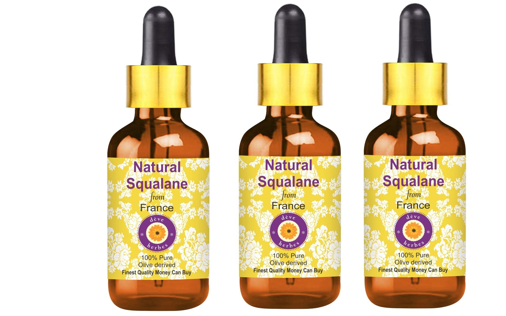 Deve Herbes Pure natural Squalane oil (from olives) 100 natural therapeutic grade for personal care WE GUARANTEE: Highest quality pure, natural and undiluted oils. If you are not satisfied, you can get a 100 refund even after using the product. Try it risk-free with no-questions-asked 100 money back guarantee. ABOUT DEVE HERBES: Dève Herbs is a privately held essential oil company specialized in sourcing the finest natural essential oils from native crop areas around the world. With the largest range of essential and carrier oils in the world, Deève Herbs has over a million highly satisfied customers in more than 100 countries. Our oils are natural, pure, undiluted, with traceable origin, of the highest quality and with a 100 money back guarantee. Our range also includes essential oil blends, aroma oils, natural herbs, body butters, floral waters and waxes.Thanks for shopping Note: Best before 36 months from date of packaging stated on the box INSTRUCTIONS FOR USE How to use: Cold-pressed or carrier oils can be applied directly to the skin. It is derived from plant sources. Use it alone or with other oils to nourish your skin. It can also be used to dilute essential oils to carry them into the skin. Please note: this product does not have a child safety hood. Keep away from children.How to use: carrier oil can be applied directly to the skin. It is derived from plant sources. Use it alone or with other oils to nourish your skin. It can also be used to dilute essential oils to carry them into the skin. Please note: this product does not have a child safety hood. Keep away from children. AROMA: Carrier oils are not aromatic oils. Most natural carrier oils have FAINT OR NO AROMA. We don't add synthetic aromas to make our oils attractive, unlike many other brands. Pure Natural Squalane Oil (from olives) is used for therapeutic purposes and has very weak or no aroma. Tens of thousands of our customers have experienced its therapeutic benefits. Quantity - 100ml Method of extraction: Cold pressed. FINEST QUALITY MONEY CAN BUY. 100 SATISFACTION PURITY GUARANTEE - We, the manufacturer, Deve Herbes, guarantee that our oils are pure and natural. We offer a 100 satisfaction guarantee on our products. If for any reason you are not satisfied, we will replace your product or refund your money. We believe our oils will give you lasting therapeutic benefits. We believe in our products and have been offering a 'No Questions Asked Money Back Guarantee' for 9 years.Deve Herbes Pure natuurlijke Squalane olie (afgeleid van olijven) met glazen druppelaar 100 natuurlijke therapeutische kwaliteit voor persoonlijke verzorging (Pack van drie) 100ml X 3 (10 oz) Deve Herbes Pure natuurlijke Squalaan olie (afkomstig van olijven) 100 natuurlijke therapeutische kwaliteit voor persoonlijke verzorging WE GARANTIE: Hoogste kwaliteit zuivere, natuurlijke en onverdunde oliën. Als u niet tevreden bent, kunt u een 100 terugbetaling krijgen, zelfs na gebruik van het product. Probeer het risico-vrij met no-questions-Asked 100 geld-terug-garantie. OVER DEVE HERBES: dève kruiden is een particulier bedrijf voor etherische olie gespecialiseerd in de aankoop van de beste natuurlijke etherische oliën uit inheemse gewasgebieden over de hele wereld. Met het grootste assortiment essentiële en drageroliën ter wereld heeft deève kruiden meer dan een miljoen zeer tevreden klanten in meer dan 100 landen. Onze oliën zijn natuurlijk, zuiver, onverdund, met traceerbare oorsprong, van de hoogste kwaliteit en met 100 geld terug garantie. Ons assortiment omvat ook etherische olie blends, aroma-oliën, natuurlijke kruiden, bodyboters, bloemenwater en was.Bedankt voor het winkelen Opmerking: Beste vóór 36 maanden vanaf datum van verpakking vermeld op de doos GEBRUIKSAANWIJZING Hoe te gebruiken: koudgeperste of drageroliën kunnen direct op de huid worden aangebracht. Het is afgeleid van plantaardige bronnen. Gebruik het alleen of met andere oliën om je huid te voeden. Het kan ook worden gebruikt om essentiële oliën te verdunnen om ze in de huid te dragen. Let op: dit product heeft geen kinderveiligheidskap. Uit de buurt van kinderen houden.Hoe te gebruiken: draagolie kan direct op de huid worden aangebracht. Het is afgeleid van plantaardige bronnen. Gebruik het alleen of met andere oliën om je huid te voeden. Het kan ook worden gebruikt om essentiële oliën te verdunnen om ze in de huid te dragen. Let op: dit product heeft geen kinderveiligheidskap. Uit de buurt van kinderen houden. AROMA: drageroliën zijn geen aromatische oliën. De meeste natuurlijke drageroliën hebben FAINT OF GEEN AROMA. We voegen geen synthetisch aroma toe om onze oliën aantrekkelijk te maken, in tegenstelling tot veel andere merken. Pure Natural Squalaan Oil (afkomstig van olijven) wordt gebruikt voor therapeutische doeleinden en heeft zeer zwak of geen aroma. Tienduizenden van onze klanten hebben zijn therapeutische voordelen ervaren. Hoeveelheid - 100ml X 3 (10oz) Container Type - Drie hoge kwaliteit amber glazen fles van 100ml elk met drie interne glazen druppelaar .100 zuiver, natuurlijk, onverdund, premium, therapeutische kwaliteit dragerolie, alcoholvrij, oplosmiddelvrij, veganistisch, wreedheidsvrij, niet getest op dieren. Wijze van extractie: Koud geperst. FIJNSTE KWALITEIT GELD KAN KOPEN. 100 tevredenheid zuiverheid GARANTIE - Wij, de fabrikant, Deve Herbes, garanderen dat onze oliën puur en natuurlijk zijn. Wij bieden 100 tevredenheidsgarantie op onze producten. Als u om welke reden dan ook niet tevreden bent, vervangen wij uw product of terugbetaling van uw geld. Wij geloven dat onze oliën u blijvende therapeutische voordelen zullen geven. Wij geloven in onze producten en bieden al 9 jaar 'Geen vragen gesteld geld terug garantie' aan.