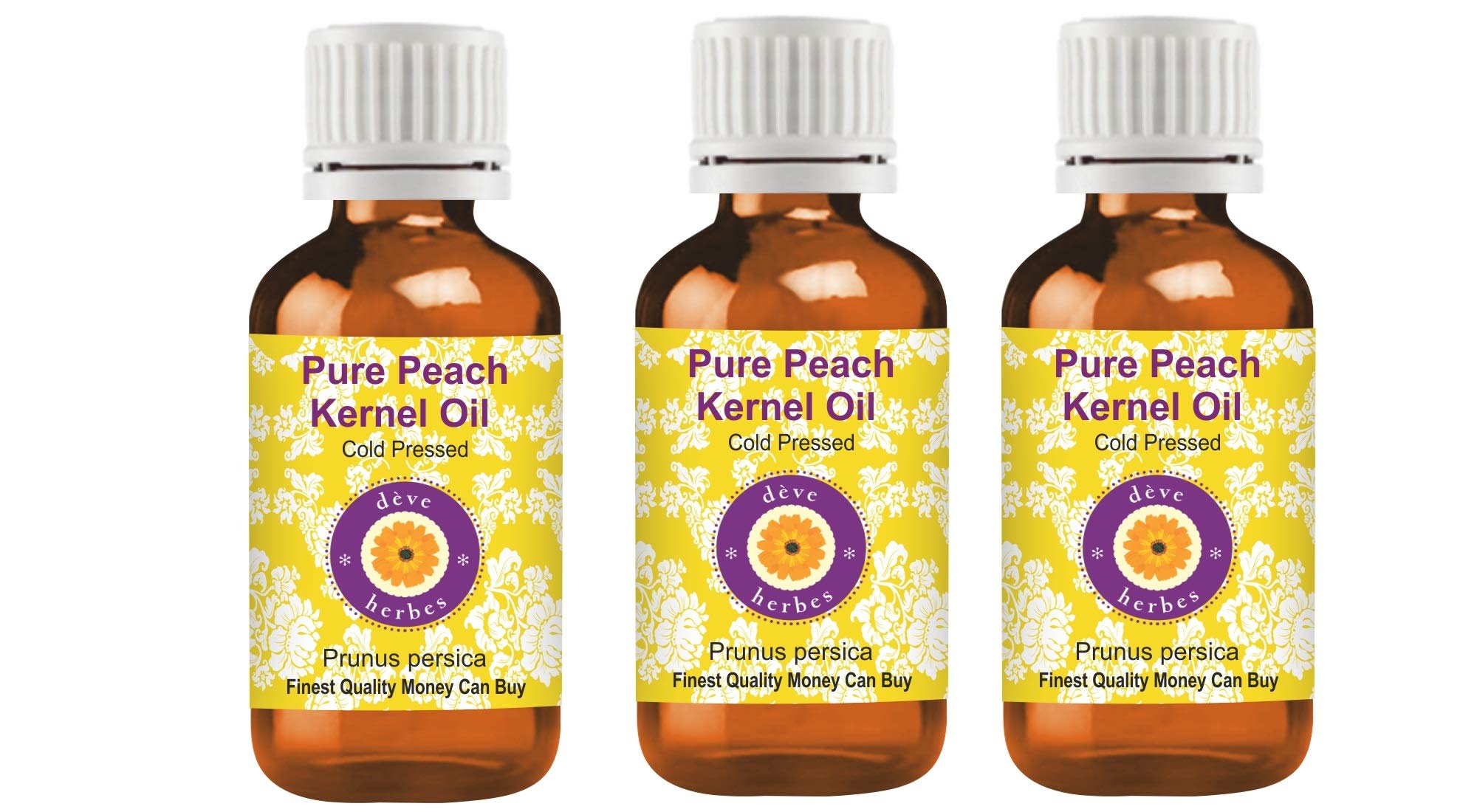 Deve Herbes Pure Peach Kernel Oil (Prunus persica) Cold Pressed INSTRUCTIONS FOR USE How to use: Cold-pressed or carrier oils can be applied directly to the skin. It is derived from plant sources. Use it alone or with other oils to nourish your skin. It can also be used to dilute essential oils to carry them into the skin. Please note: this product does not have a child safety hood. Keep away from children.How to use: Cold-pressed or carrier oils can be applied directly to the skin. It is derived from plant sources. Use it alone or with other oils to nourish your skin. It can also be used to dilute essential oils to carry them into the skin. Please note: this product does not have a child safety hood. Keep away from children. AROMA: Carrier oils are not aromatic oils. Most natural carrier oils have FAINT OR NO AROMA. We don't add synthetic aromas to make our oils attractive, unlike many other brands. Pure peach kernel oil is used for therapeutic purposes and has very weak or no aroma. Tens of thousands of our customers have experienced its therapeutic benefits. Quantity - 100ml Botanical Name - Prunus persica, 100 Pure, Natural, Undiluted, Premium, Therapeutic Grade Carrier Oil, Alcohol Free, Solvent Free, Vegan, Cruelty Free, Not Tested on Animals. Method of extraction: Cold pressed. FINEST QUALITY MONEY CAN BUY. 100 SATISFACTION PURITY GUARANTEE - We, the manufacturer, Deve Herbes, guarantee that our oils are pure and natural. We offer a 100 satisfaction guarantee on our products. If for any reason you are not satisfied, we will replace your product or refund your money. We believe our oils will give you lasting therapeutic benefits. We believe in our products and have been offering a 'No Questions Asked Money Back Guarantee' for 9 years.Deve Herbes Pure Perzik Kernel Oil (Prunus persica) Koud geperst (Pack van Drie) 100ml X 3 (10 oz) Deve Herbes Pure Perzikpitolie (Prunus persica) Koudgeperst GEBRUIKSAANWIJZING Hoe te gebruiken: koudgeperste of drageroliën kunnen direct op de huid worden aangebracht. Het is afgeleid van plantaardige bronnen. Gebruik het alleen of met andere oliën om je huid te voeden. Het kan ook worden gebruikt om essentiële oliën te verdunnen om ze in de huid te dragen. Let op: dit product heeft geen kinderveiligheidskap. Uit de buurt van kinderen houden.Hoe te gebruiken: koudgeperste of drageroliën kunnen direct op de huid worden aangebracht. Het is afgeleid van plantaardige bronnen. Gebruik het alleen of met andere oliën om je huid te voeden. Het kan ook worden gebruikt om essentiële oliën te verdunnen om ze in de huid te dragen. Let op: dit product heeft geen kinderveiligheidskap. Uit de buurt van kinderen houden. AROMA: drageroliën zijn geen aromatische oliën. De meeste natuurlijke drageroliën hebben FAINT OF GEEN AROMA. We voegen geen synthetisch aroma toe om onze oliën aantrekkelijk te maken, in tegenstelling tot veel andere merken. Pure perzikpitolie wordt gebruikt voor therapeutische doeleinden en heeft zeer zwak of geen aroma. Tienduizenden van onze klanten hebben zijn therapeutische voordelen ervaren. Hoeveelheid - 100ml X 3 (10 oz) Container Type - Drie hoge kwaliteit Amber Glass Fles van 100ml elk met drie interne Plastic Euro Dropper. Botanische naam - Prunus persica, 100 zuiver, natuurlijk, onverdund, Premium, Therapeutische Grade Carrier Olie, Alcoholvrij, oplosmiddelvrij, veganistisch, wreedheidsvrij, niet getest op dieren. Wijze van extractie: Koud geperst. FIJNSTE KWALITEIT GELD KAN KOPEN. 100 tevredenheid zuiverheid GARANTIE - Wij, de fabrikant, Deve Herbes, garanderen dat onze oliën puur en natuurlijk zijn. Wij bieden 100 tevredenheidsgarantie op onze producten. Als u om welke reden dan ook niet tevreden bent, vervangen wij uw product of terugbetaling van uw geld. Wij geloven dat onze oliën u blijvende therapeutische voordelen zullen geven. Wij geloven in onze producten en bieden al 9 jaar 'Geen vragen gesteld geld terug garantie' aan.