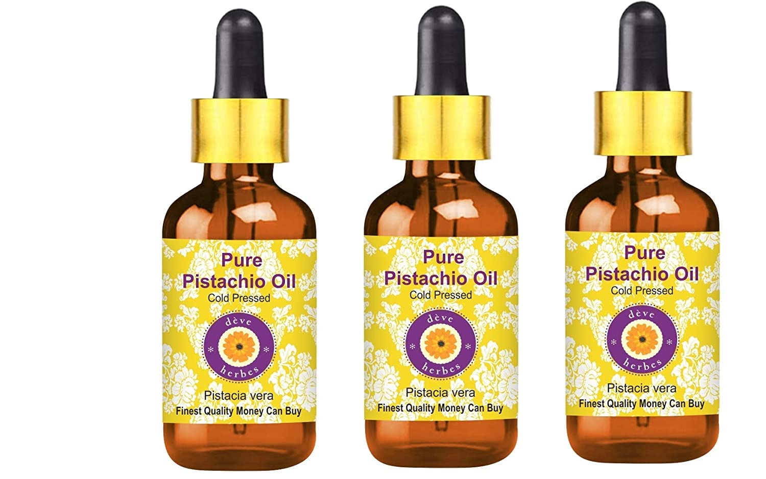 Deve Herbes Pure Pistachio Oil (Pistacia Vera) with Glass Dropper Cold Pressed (Pack of three) 100ml X 3 (10 oz)
