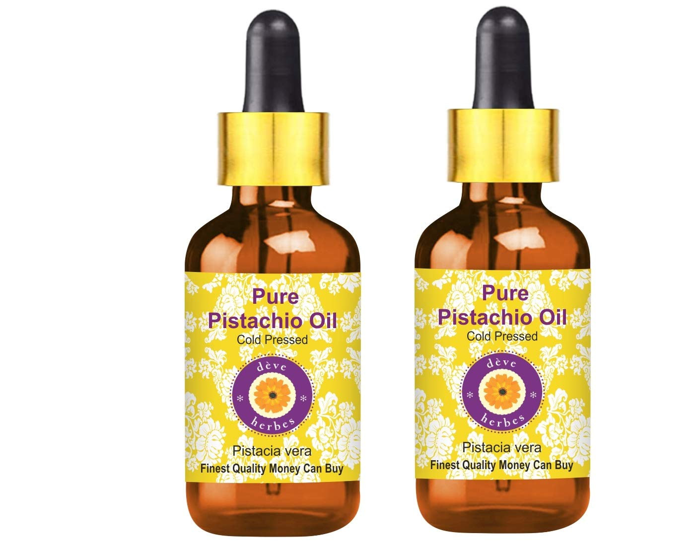 Deve Herbes Pure Pistachio Oil Pistacia vera with Glass Dropper Cold Pressed Pack of Two 100ml X 2 6 oz