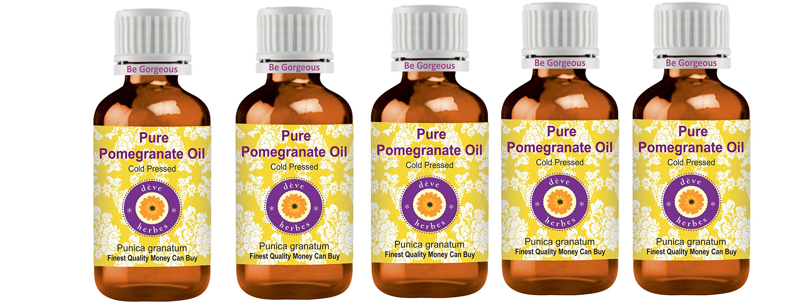 Deve Herbes Pure Pomegranate Oil (Punica granatum) Cold Pressed INSTRUCTIONS FOR USE HOW TO USE: Cold-pressed or Carrier oils can be applied directly to the skin. It is derived from plant sources. Use it alone or with other oils to nourish your skin. It can also be used to dilute essential oils to carry them into the skin. Please note: this product does not have a child safety hood. Keep away from children.DIRECTIONS FOR USE: Cold Pressed or Carrier oils can be applied directly to the skin. It is derived from plant sources. Use it alone or with other oils to nourish your skin. It can also be used to dilute essential oils to carry them into the skin. PLEASE NOTE: This product does not have a child safety hood. Keep away from children. AROMA: Carrier oils are NOT aromatic oils. Most natural carrier oils have FAINT OR NO AROMA. We don't add synthetic aromas to make our oils appealing, unlike many other brands. Pure Pomegranate Oil is used for therapeutic purposes and has a very weak or no aroma. Tens of thousands of our customers have experienced its therapeutic benefits. Quantity - 100ml Botanical name - Punica granatum, 100 pure, natural, undiluted, premium, therapeutic grade carrier oil, alcohol-free, solvent-free, vegan, cruelty-free, not tested on animals. Method of extraction: cold pressed. BEST QUALITY MONEY CAN BUY. 100 Satisfaction Purity Guarantee - We, the manufacturer, Deve Herbes, guarantee that our oils are pure and natural. We offer a 100 satisfaction guarantee on our products. If for any reason you are not satisfied, we will replace your product or refund your money. We believe our oils will provide you with lasting therapeutic benefits. We believe in our products and have been offering a 'No Questions Asked Money Back Guarantee' for 9 years.Deve Herbes Pure Granaatappelolie (Punica granatum) Koud geperst (Pack van vijf) 100ml X 5 (16,8 oz) Deve Herbes Pure Granaatappelolie (Punica granatum) Koudgeperst GEBRUIKSAANWIJZING HOE TE GEBRUIKEN: Koud geperste of Carrier oliën kunnen direct op de huid worden aangebracht. Het is afgeleid van plantaardige bronnen. Gebruik het alleen of met andere oliën om je huid te voeden. Het kan ook worden gebruikt om essentiële oliën te verdunnen om ze in de huid te dragen. Let op: dit product heeft geen kinderveiligheidskap. Uit de buurt van kinderen houden.GEBRUIKSAANWIJZING: Cold Pressed of Carrier oliën kunnen direct op de huid worden aangebracht. Het is afgeleid van plantaardige bronnen. Gebruik het alleen of met andere oliën om je huid te voeden. Het kan ook worden gebruikt om etherische oliën te verdunnen om ze in de huid te dragen. LET OP: Dit product heeft geen veiligheidskap voor kinderen. Uit de buurt van kinderen houden. AROMA: Drageroliën zijn GEEN aromatische oliën. De meeste natuurlijke drageroliën hebben FAINT OF GEEN AROMA. We voegen geen synthetische aroma's toe om onze oliën aantrekkelijk te maken, in tegenstelling tot veel andere merken. Pure Granaatappelolie wordt gebruikt voor therapeutische doeleinden en heeft een zeer zwak of geen aroma. Tienduizenden van onze klanten hebben de therapeutische voordelen ervan ervaren. Hoeveelheid - 100ml X 5 (16,8 oz) Container Type - Vijf hoogwaardige Amber glazen fles van 100ml elk met vijf interne Plastic Euro Dropper. Botanische naam - Punica granatum, 100 puur, natuurlijk, onverdund, premium, therapeutische kwaliteit dragerolie, alcoholvrij, oplosmiddelvrij, veganistisch, dierproefvrij, niet getest op dieren. Wijze van extractie: koudgeperst. BESTE KWALITEIT GELD KAN KOPEN. 100 tevredenheid zuiverheid garantie - Wij, de fabrikant, Deve Herbes, garanderen dat onze oliën puur en natuurlijk zijn. Wij bieden 100 tevredenheidsgarantie op onze producten. Als u om welke reden dan ook niet tevreden bent, zullen wij uw product vervangen of uw geld terugbetalen. Wij geloven dat onze oliën u blijvende therapeutische voordelen zullen bieden. Wij geloven in onze producten en bieden al 9 jaar 'Geen vragen gesteld geld terug garantie' aan.