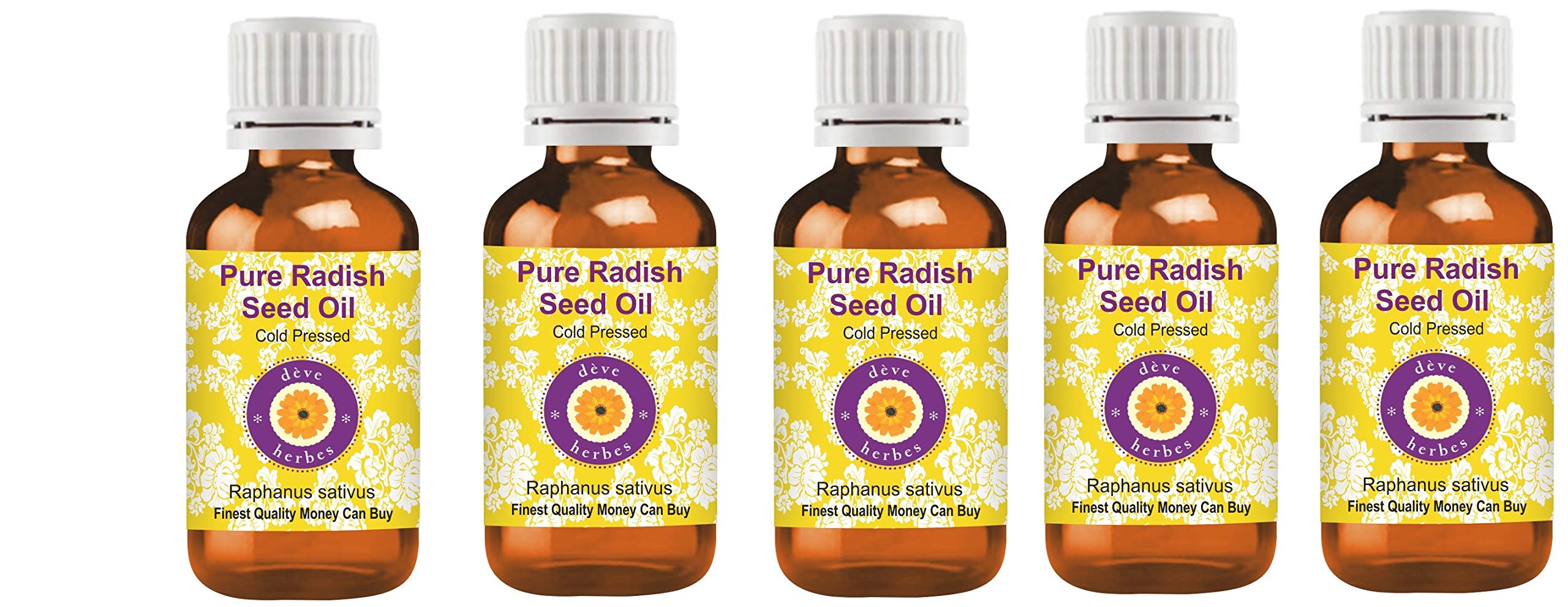 Deve Herbes Pure Radish Seed Oil Raphanus sativus 100 Natural Therapeutic Grade Cold Pressed Pack of Five 5 x 100 ml