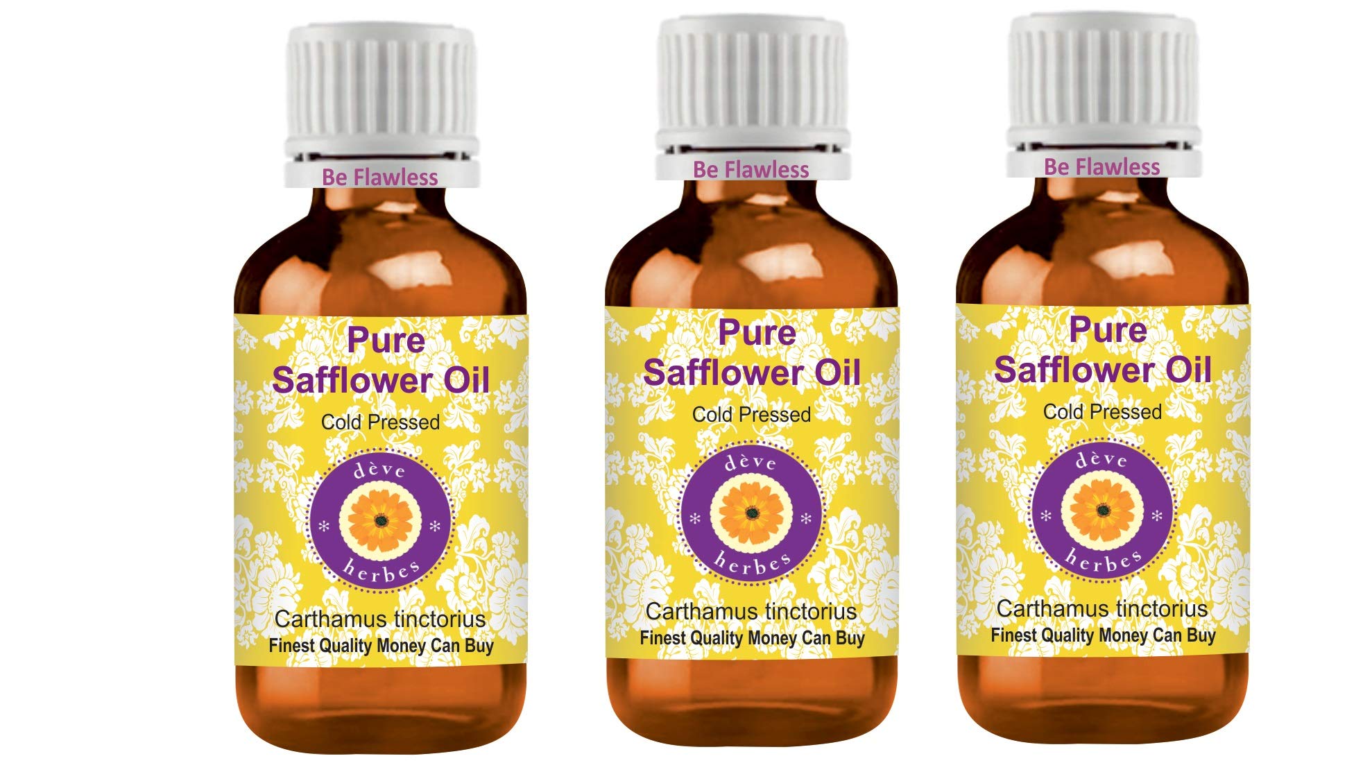 Deve Herbes Pure Safflower Oil Carthamus tinctorius Cold Pressed Pack of Three 100ml X 3 10 oz