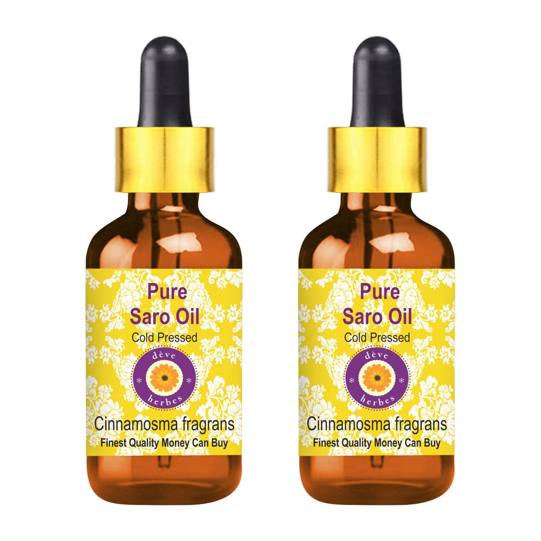Deve Herbes Pure Saro Oil (Cinnamosma fragrans) with Glass Dropper Cold Pressed (Pack of Two) 100mlx2 (6.76 oz)