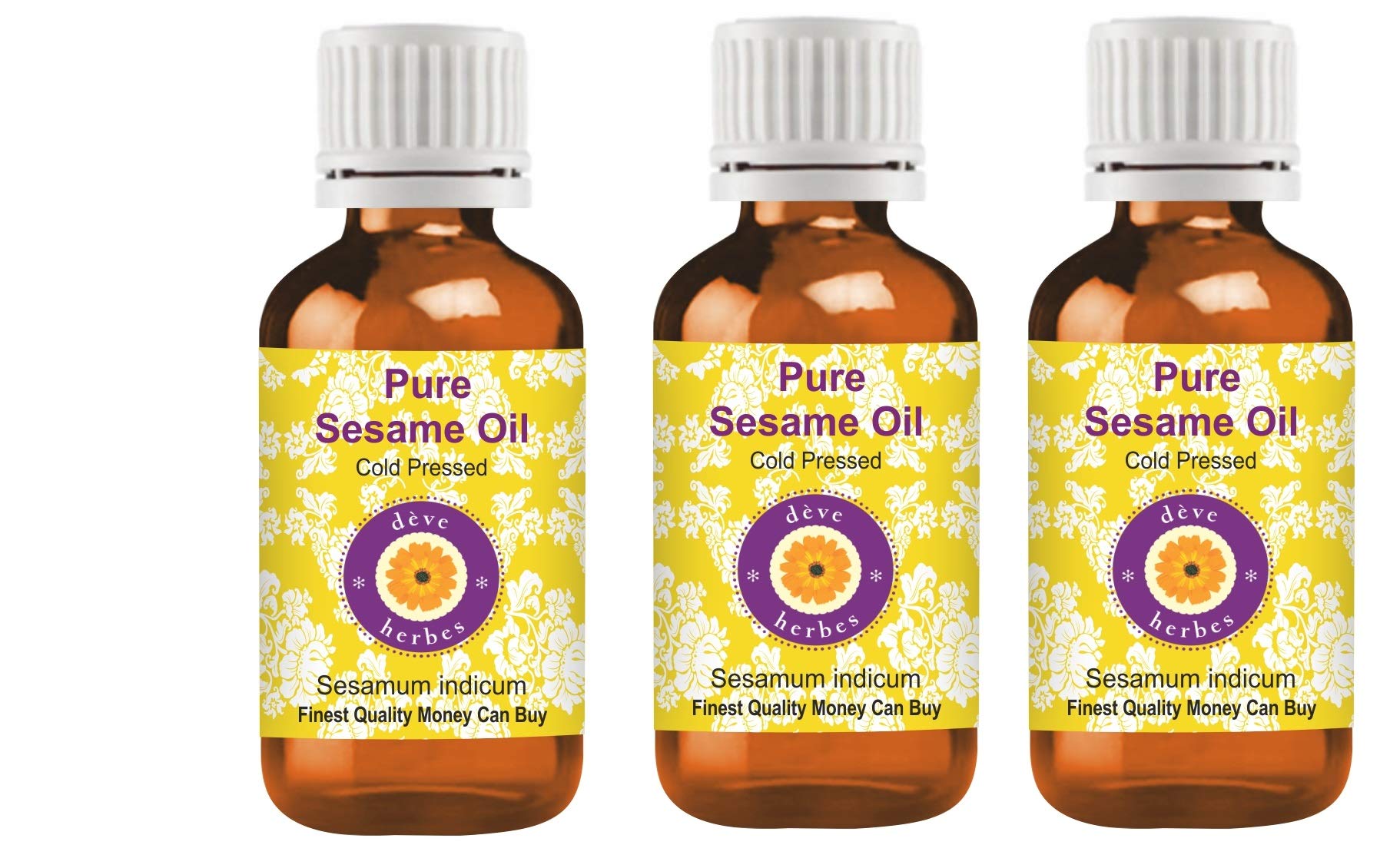 Deve Herbes Pure Sesame Oil (Sesamum indicum) 100 natural therapeutic grade cold pressed for personal care WE GUARANTEE: Highest quality pure, natural and undiluted oils. If you are not satisfied, you can get a 100 refund even after using the product. Try it risk-free with no-questions-asked 100 money back guarantee. ABOUT DEVE HERBES: Dève Herbs is a privately held essential oil company specialized in sourcing the finest natural essential oils from native crop areas around the world. With the largest range of essential and carrier oils in the world, Deève Herbs has over a million highly satisfied customers in more than 100 countries. Our oils are natural, pure, undiluted, with traceable origin, of the highest quality and with a 100 money back guarantee. Our range also includes essential oil blends, aroma oils, natural herbs, body butters, floral waters and waxes.Thanks for shopping INSTRUCTIONS FOR USE How to use - Cold pressed or Carrier oils can be applied directly to the skin. Derived from plant sources, each oil has individual properties and suitability for use. They can be used alone or with other oils to nourish your skin. Carrier oils are also used to dilute essential oils and absolutes to carry essential oils into the skin and body. Carrier oils do not have a concentrated aroma, but some have a mild scent.Custom Taxes Customer's Border Tax, if applicable, is payable by the customer. Check your country import limit, VAT border etc. Botanical Name: Sesamum indicum, 100 pure, natural, undiluted, premium, therapeutic grade carrier oil, alcohol free, solvent free, vegan, cruelty free, not tested on animals. Method of extraction - Cold pressed. Most natural carrier oils have weak or no aroma. Our oils are 100 natural and no synthetic aroma is added to make it attractive. How to use - Cold pressed or Carrier oils can be applied directly to the skin. Derived from plant sources, each oil has individual properties and suitability for use. They can be used alone or with other oils to nourish your skin. Carrier oils are also used to dilute essential oils and absolutes to carry essential oils into the skin and body. Carrier oils do not have a concentrated aroma, but some have a mild scent. Quantity - 100ml FINEST QUALITY MONEY CAN BUY. 100 SATISFACTION PURITY GUARANTEE - We, the manufacturer, Deve Herbes, guarantee that our oils are pure and natural. We offer a 100 satisfaction guarantee on our products. If for any reason you are not satisfied, we will replace your product or refund your money. We believe our oils will give you lasting therapeutic benefits. We believe in our products and have been offering a 'No Questions Asked Money Back Guarantee' for 9 years.Deve Herbes Pure sesamolie (Sesamum indicum) 100 natuurlijke therapeutische kwaliteit koud geperst voor persoonlijke verzorging (Pack van drie) 100ml X 3 (10 oz) Deve Herbes Pure Sesamolie (Sesamum indicum) 100 natuurlijke therapeutische kwaliteit koud geperst voor persoonlijke verzorging WE GARANTIE: Hoogste kwaliteit zuivere, natuurlijke en onverdunde oliën. Als u niet tevreden bent, kunt u een 100 terugbetaling krijgen, zelfs na gebruik van het product. Probeer het risico-vrij met no-questions-Asked 100 geld-terug-garantie. OVER DEVE HERBES: dève kruiden is een particulier bedrijf voor etherische olie gespecialiseerd in de aankoop van de beste natuurlijke etherische oliën uit inheemse gewasgebieden over de hele wereld. Met het grootste assortiment essentiële en drageroliën ter wereld heeft deève kruiden meer dan een miljoen zeer tevreden klanten in meer dan 100 landen. Onze oliën zijn natuurlijk, zuiver, onverdund, met traceerbare oorsprong, van de hoogste kwaliteit en met 100 geld terug garantie. Ons assortiment omvat ook etherische olie blends, aroma-oliën, natuurlijke kruiden, bodyboters, bloemenwater en was.Bedankt voor het winkelen GEBRUIKSAANWIJZING Hoe te gebruiken - Koud geperste of Carrier oliën kunnen direct op de huid worden aangebracht. Afgeleid van plantaardige bronnen, heeft elke olie individuele eigenschappen en geschikt voor gebruik. Ze kunnen alleen of met andere oliën worden gebruikt om uw huid te voeden. Carrier oliën worden ook gebruikt om essentiële oliën en absolutes te verdunnen om essentiële oliën in de huid en lichaam te dragen Carrier oliën hebben geen geconcentreerd aroma, maar sommige hebben een milde geur.Op maat gemaakte belastingen de grensbelasting van het klant, indien van toepassing, is door de klant te betalen. Controleer uw land invoerlimiet, grens btw etc. Botanische naam: Sesamum indicum, 100 zuiver, natuurlijk, onverdund, premium, therapeutische kwaliteit draagolie, alcoholvrij, oplosmiddelvrij, veganistisch, wreedheidsvrij, niet getest op dieren. Wijze van extractie - Koud geperst. De meeste natuurlijke drageroliën hebben zwak of geen aroma. Onze oliën zijn 100 natuurlijk en er wordt geen synthetisch aroma toegevoegd om het aantrekkelijk te maken. Hoe te gebruiken - Koud geperste of Carrier oliën kunnen direct op de huid worden aangebracht. Afgeleid van plantaardige bronnen, heeft elke olie individuele eigenschappen en geschikt voor gebruik. Ze kunnen alleen of met andere oliën worden gebruikt om uw huid te voeden. Carrier oliën worden ook gebruikt om essentiële oliën en absolutes te verdunnen om essentiële oliën in de huid en lichaam te dragen Carrier oliën hebben geen geconcentreerd aroma, maar sommige hebben een milde geur. Hoeveelheid - 100ml X 3 (10 oz) Container Type - Drie hoge kwaliteit Amber Glass Fles van 100ml elk met drie interne Plastic Euro Dropper. FIJNSTE KWALITEIT GELD KAN KOPEN. 100 tevredenheid zuiverheid GARANTIE - Wij, de fabrikant, Deve Herbes, garanderen dat onze oliën puur en natuurlijk zijn. Wij bieden 100 tevredenheidsgarantie op onze producten. Als u om welke reden dan ook niet tevreden bent, vervangen wij uw product of terugbetaling van uw geld. Wij geloven dat onze oliën u blijvende therapeutische voordelen zullen geven. Wij geloven i