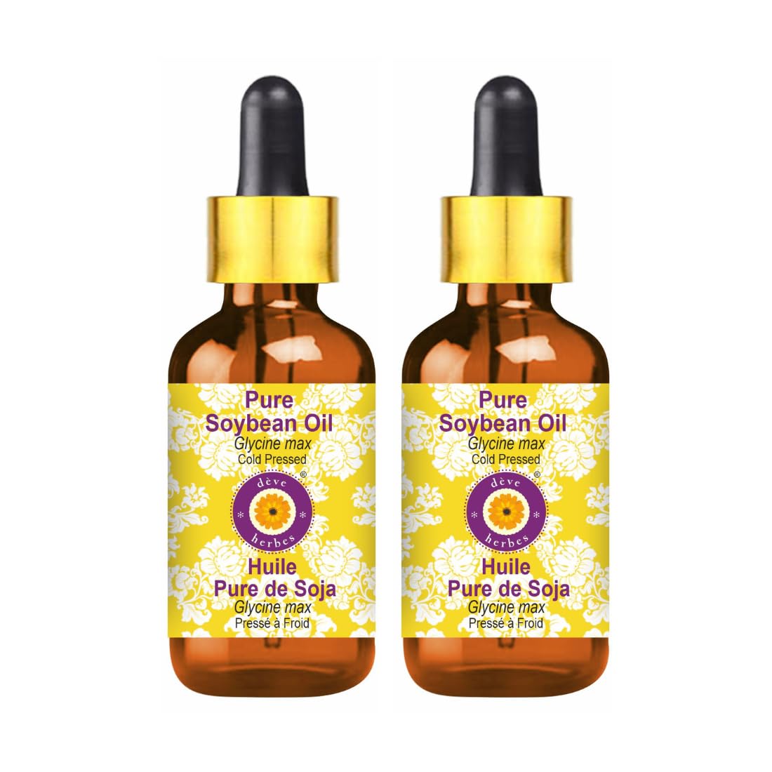 Deve Herbes Pure Soybean Oil (Glycine max) with Glass Dropper Cold Pressed (Pack of Two) 100ml X 2 (6.76 oz)