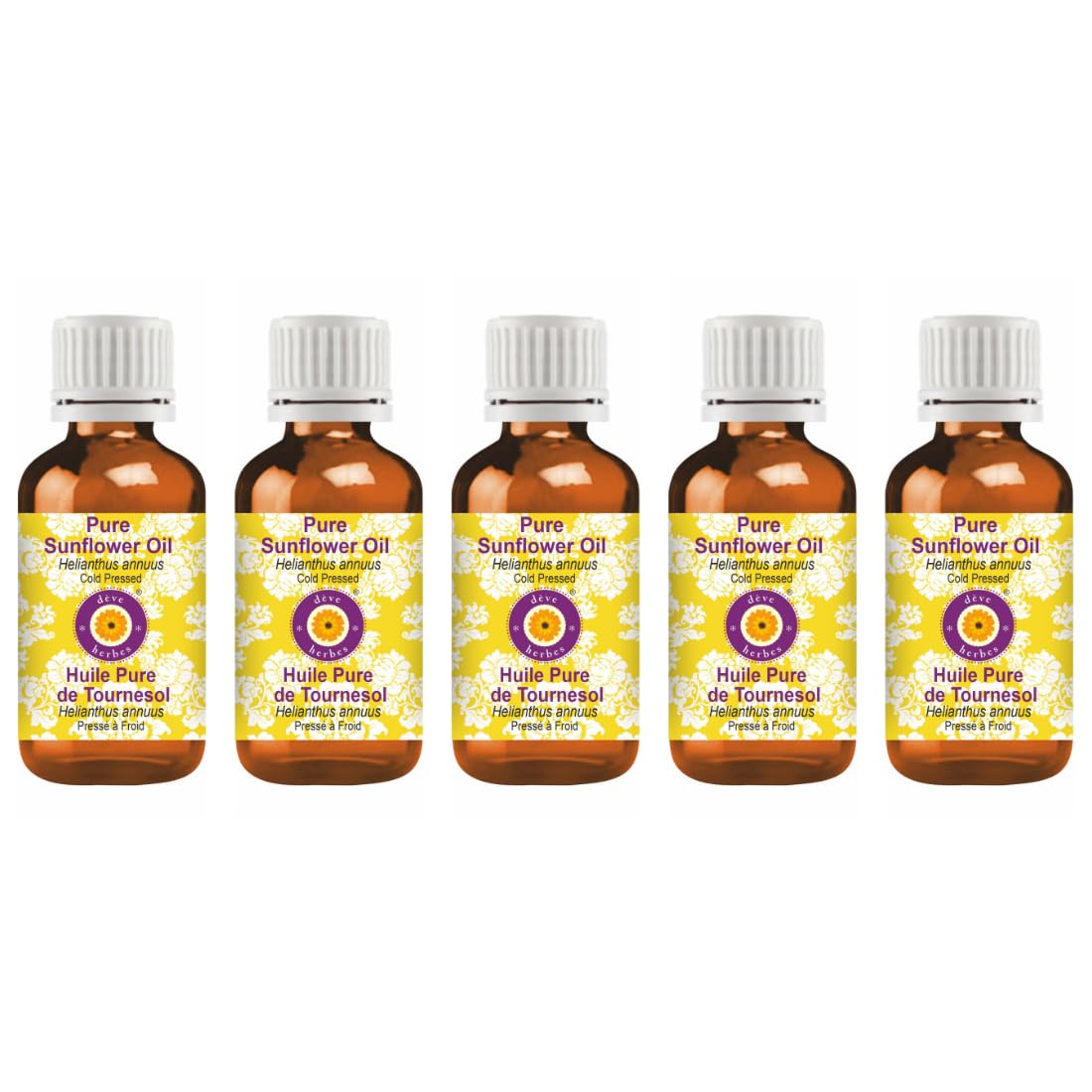 Deve Herbes Pure Sunflower Oil (Helianthus annuus) Cold Pressed (Pack of Five) 100ml X 5 (16.9 oz) 3.38 Fl Oz (Pack of 5)