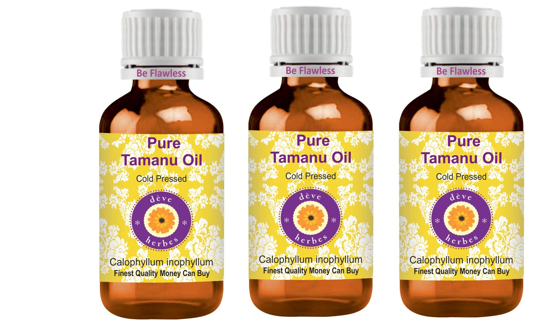 Deve Herbes Pure Tamanu Oil (Calofyllum inophyllum) 100 natural therapeutic grade cold pressed for personal care WE GUARANTEE: Highest quality Pure, natural and undiluted oils. If you are not satisfied, you can get a 100 refund even after using the product. Try it risk-free with no questions asked 100 money back guarantee. ABOUT DEVE HERBES: Dève Herbs is a privately held essential oil company that specializes in sourcing the finest natural essential oils from native crop areas around the world. With the largest range of essential carrier oils in the world, Dève Herbs has over a million highly satisfied customers in over 100 countries. Our oils are natural, pure, undiluted, with traceable origin, of the highest quality and with a 100 money back guarantee. Our range also includes essential oil blends, aroma oils, natural herbs, body butters, flower waters and waxes.Thanks for shopping INSTRUCTIONS FOR USE HOW TO USE - Cold pressed or Carrier oils can be applied directly to the skin. Derived from plant sources, each oil has individual properties and suitability for use. They can be used alone or with other oils to nourish your skin. Carrier oils are also used to dilute essential oils and absolutes to carry essential oils into the skin and body. Carrier oils do not have a concentrated aroma, but some have a mild scent.Customs duties or border taxes of customer's country are payable by customer. Check your country's import limit, VAT border etc. Botanical name: Calofyllum inofyllum, 100 pure, natural, undiluted, premium, therapeutic grade carrier oil, alcohol free, solvent free, vegan, cruelty free, not tested on animals. Method of extraction - Cold pressed. Most natural carrier oils have weak or no aroma. Our oils are 100 natural and no synthetic aroma is added to make it attractive. HOW TO USE - Cold pressed or Carrier oils can be applied directly to the skin. Derived from plant sources, each oil has individual properties and suitability for use. They can be used alone or with other oils to nourish your skin. Carrier oils are also used to dilute essential oils and absolutes to carry essential oils into the skin and body. Carrier oils do not have a concentrated aroma, but some have a mild scent. Quantity - 100ml MOST VALUE QUALITY CAN BUY. 100 SATISFACTION PURITY GUARANTEE - We, the manufacturer, Deve Herbes, guarantee that our oils are pure and natural. We offer a 100 satisfaction guarantee on our products. If for any reason you are not satisfied, we will replace your product or refund your money. We believe our oils will give you lasting therapeutic benefits. We believe in our products and have been offering 'No Questions Asked Money Back Guarantee' for the past 9 years.Deve Herbes Pure Tamanu olie (Calophyllum inophyllum) 100 natuurlijke therapeutische kwaliteit koud geperst voor persoonlijke verzorging (Pack van drie) 100ml X 3 (10 oz) Deve Herbes Pure Tamanu Olie (Calofyllum inophyllum) 100 natuurlijke therapeutische kwaliteit koud geperst voor persoonlijke verzorging WE GARANTIE: Hoogste kwaliteit Pure, natuurlijke en onverdunde oliën. Als u niet tevreden bent, kunt u een 100 terugbetaling krijgen, zelfs na gebruik van het product. Probeer het risicovrij met geen vragen gestelde 100 geld-terug garantie. OVER DEVE HERBES: dève kruiden is een particulier bedrijf voor etherische olie dat gespecialiseerd is in het kopen van beste natuurlijke etherische oliën uit inheemse gewasgebieden over de hele wereld. Met het grootste assortiment essentiële drageroliën ter wereld heeft dève kruiden meer dan een miljoen zeer tevreden klanten in meer dan 100 landen. Onze oliën zijn natuurlijk, puur, onverdund, met traceerbare oorsprong, van de hoogste kwaliteit en met 100 geld terug garantie. Ons assortiment omvat ook etherische oliemengsels, aroma-oliën, natuurlijke kruiden, bodyboters, bloemwater en was.Bedankt voor het winkelen GEBRUIKSAANWIJZING HOE TE GEBRUIKEN - Koud geperste of Carrier oliën kunnen direct op de huid worden aangebracht. Afgeleid van plantaardige bronnen, elke olie heeft individuele eigenschappen en geschikt voor gebruik. Ze kunnen alleen of met andere oliën worden gebruikt om uw huid te voeden. Drageroliën worden ook gebruikt om essentiële oliën en absoluut te verdunnen om essentiële oliën in de huid en het lichaam te dragen Carrier oliën hebben geen geconcentreerd aroma, maar sommige hebben een milde geur.Douanerechten of de grensbelastingen van het land van de klant zijn betaalbaar door de klant. Controleer de import limiet van uw land, grens BTW etc. Botanische naam: Calofyllum inofyllum, 100 zuiver, natuurlijk, onverdund, premium, therapeutische kwaliteit dragerolie, alcoholvrij, oplosmiddelvrij, veganistisch, wreedheidsvrij, niet getest op dieren. Wijze van extractie - Koud geperst. De meeste natuurlijke drageroliën hebben zwak of geen aroma. Onze oliën zijn 100 natuurlijk en er wordt geen synthetisch aroma toegevoegd om het aantrekkelijk te maken. HOE TE GEBRUIKEN - Koud geperste of Carrier oliën kunnen direct op de huid worden aangebracht. Afgeleid van plantaardige bronnen, elke olie heeft individuele eigenschappen en geschikt voor gebruik. Ze kunnen alleen of met andere oliën worden gebruikt om uw huid te voeden. Drageroliën worden ook gebruikt om essentiële oliën en absoluut te verdunnen om essentiële oliën in de huid en het lichaam te dragen Carrier oliën hebben geen geconcentreerd aroma, maar sommige hebben een milde geur. Hoeveelheid - 100ml X 3 (10 oz) Container Type - Drie hoogwaardige amberglazen fles van 100ml elk met drie interne plastic Euro druppelaar. GELDSTE KWALITEIT KAN KOPEN. 100 tevredenheid zuiverheid GARANTIE - Wij, de fabrikant, Deve Herbes, garanderen dat onze oliën puur en natuurlijk zijn. Wij bieden 100 tevredenheidsgarantie op onze producten. Als u om welke reden dan ook niet tevreden bent, vervangen wij uw product of betalen wij uw geld terug. Wij geloven dat onze oliën u blijvende therapeutische voordelen zullen geven