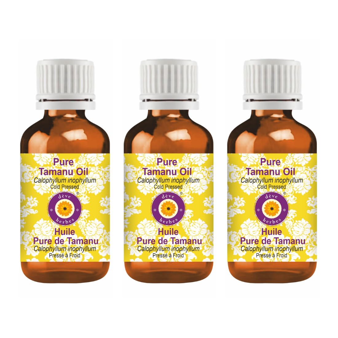 Deve Herbes Pure Tamanu Oil (Calophyllum inophyllum) Cold Pressed (Pack of Three)100ml X 3 (10 oz)